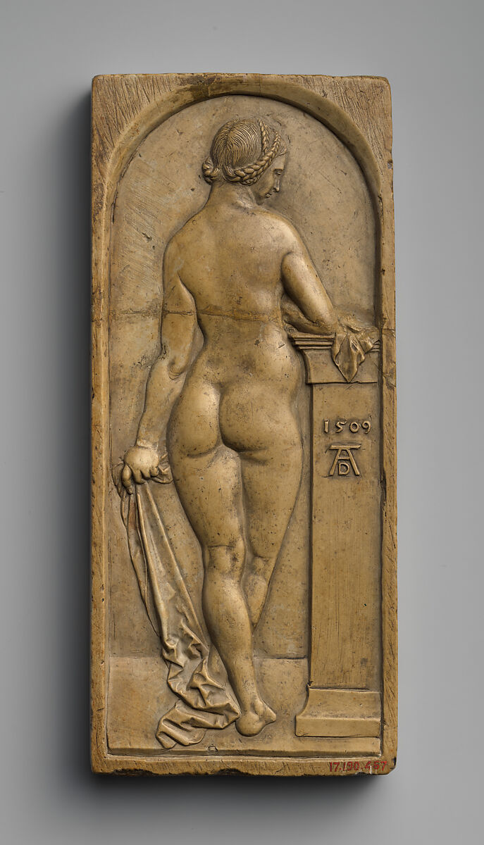 The early sixteenth century marked the height of the “Dürer Renaissance,” during which the artistic master’s initials were so famous that their duplication by other artists was recognized as a crime. Though this relief follows a composition by Dürer and is marked with his monogram, it was made after his death and falsely monogrammed and backdated, perhaps to satisfy the demand of the affluent collectors who competed to acquire his works. Indeed, this relief may be identical to a “female nude cut in stone by AD” in the 1607–11 inventory of Emperor Rudolf II’s Kunstkammer in Prague.