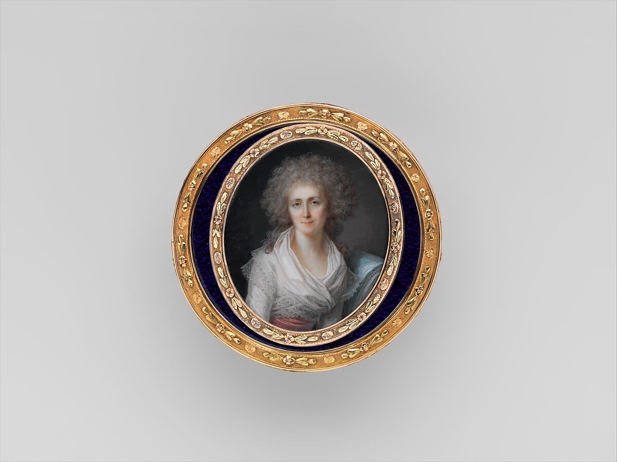 This very fine miniature is set in the lid of a box made of gold and blue glass.
