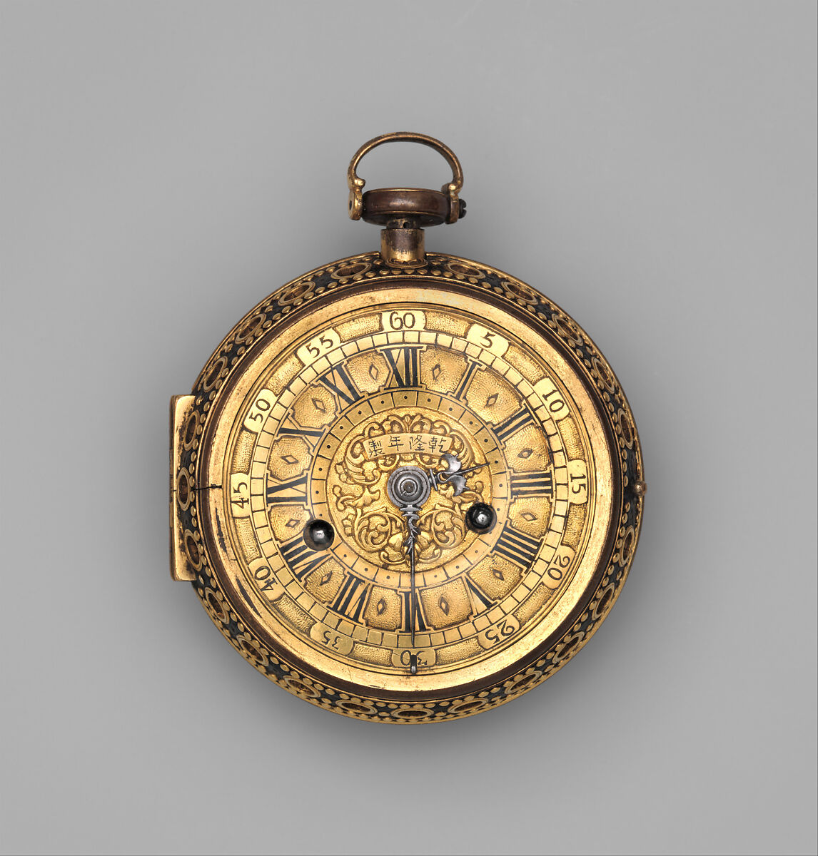 This watch looks European, but the inscription, “Made in Qianlong era,” referring to the emperor’s reign (1736–95), reveals it was made in China. Watches such as this illustrate the great enthusiasm in China for European horology.