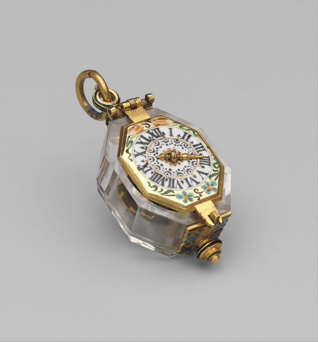 • Medium: Case: rock crystal and gold; Movement: gilded brass and steel, partly blued