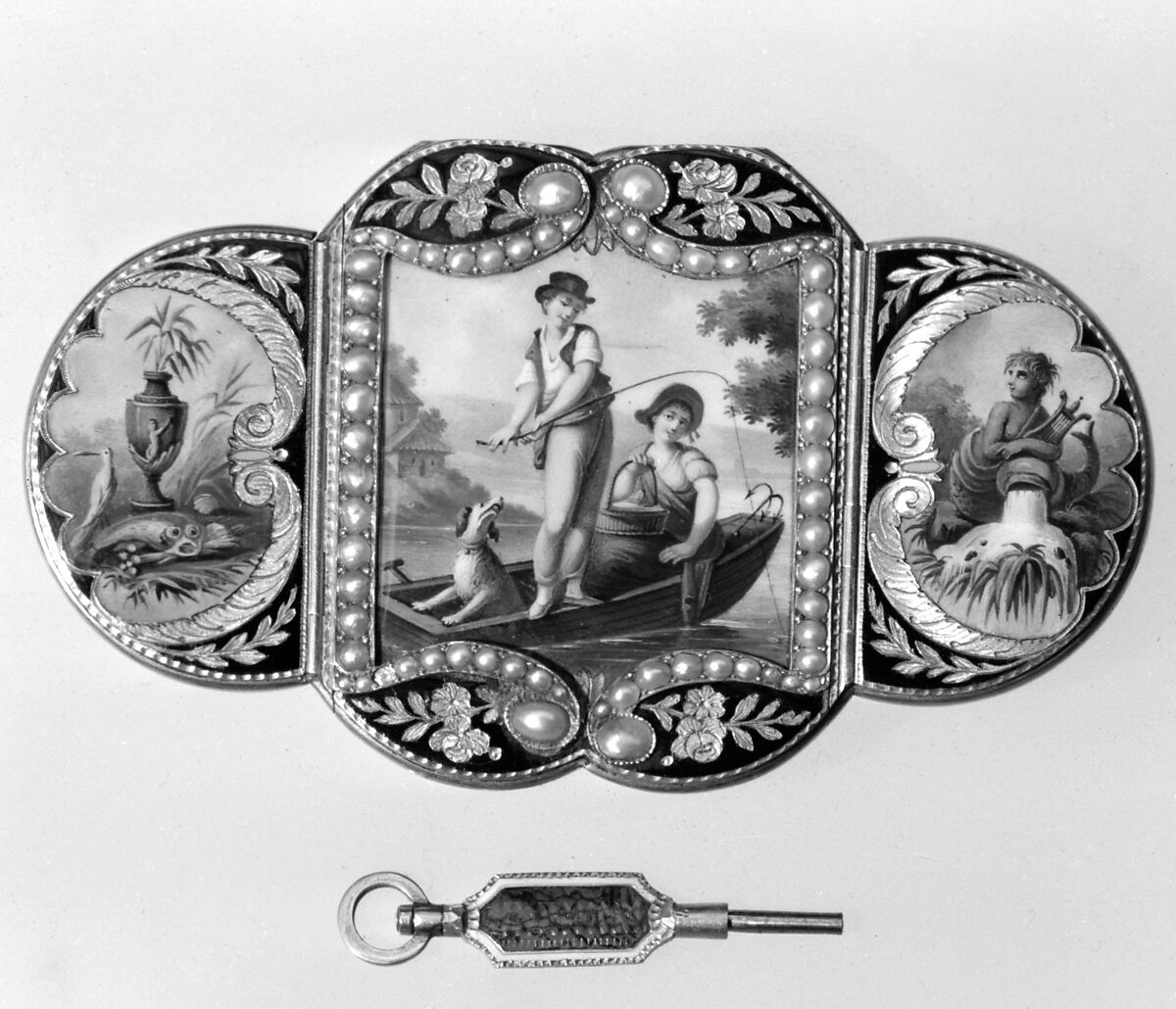 - Medium: Gold, enamel, pearls