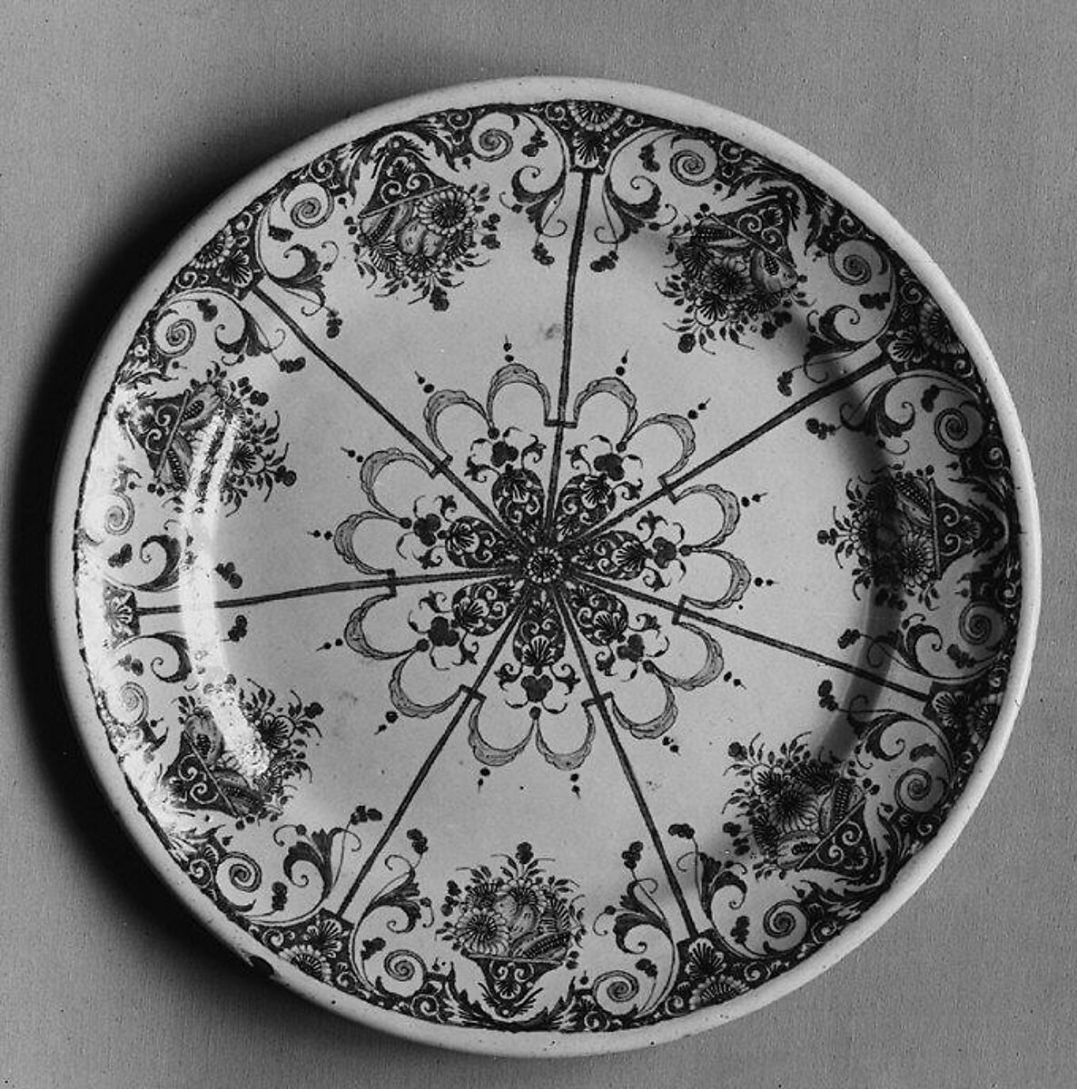Faience, or tin-glazed and enameled earthenware, first emerged in France during the sixteenth century, reaching widespread usage among elite patrons during the seventeenth and early eighteenth centuries, prior to the establishment of soft-paste porcelain factories. Although characterized as more provincial in style than porcelain, French faience was used at the court of Louis XIV as part of elaborate meals and displays, with large-scale vessels incorporated into the Baroque garden designs of Versailles. Earlier examples of French faience attest to the strong influence of maiolica artists from Italy. Later works demonstrate the ways in which cities such as Nevers, Rouen, Lyon, Moustiers, and Marseille developed innovative vessel shapes and decorative motifs prized among collectors throughout Europe.