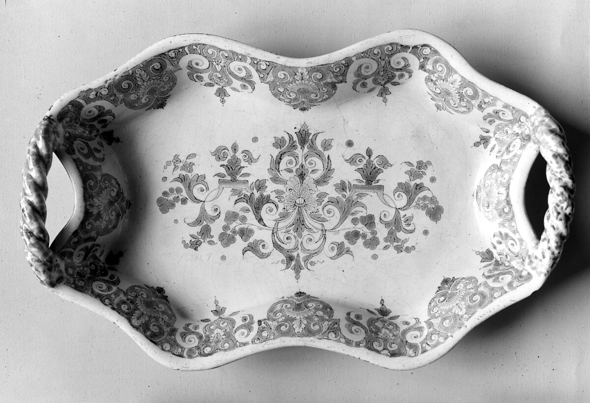 Faience, or tin-glazed and enameled earthenware, first emerged in France during the sixteenth century, reaching widespread usage among elite patrons during the seventeenth and early eighteenth centuries, prior to the establishment of soft-paste porcelain factories. Although characterized as more provincial in style than porcelain, French faience was used at the court of Louis XIV as part of elaborate meals and displays, with large-scale vessels incorporated into the Baroque garden designs of Versailles. Earlier examples of French faience attest to the strong influence of maiolica artists from Italy. Later works demonstrate the ways in which cities such as Nevers, Rouen, Lyon, Moustiers, and Marseille developed innovative vessel shapes and decorative motifs prized among collectors throughout Europe.