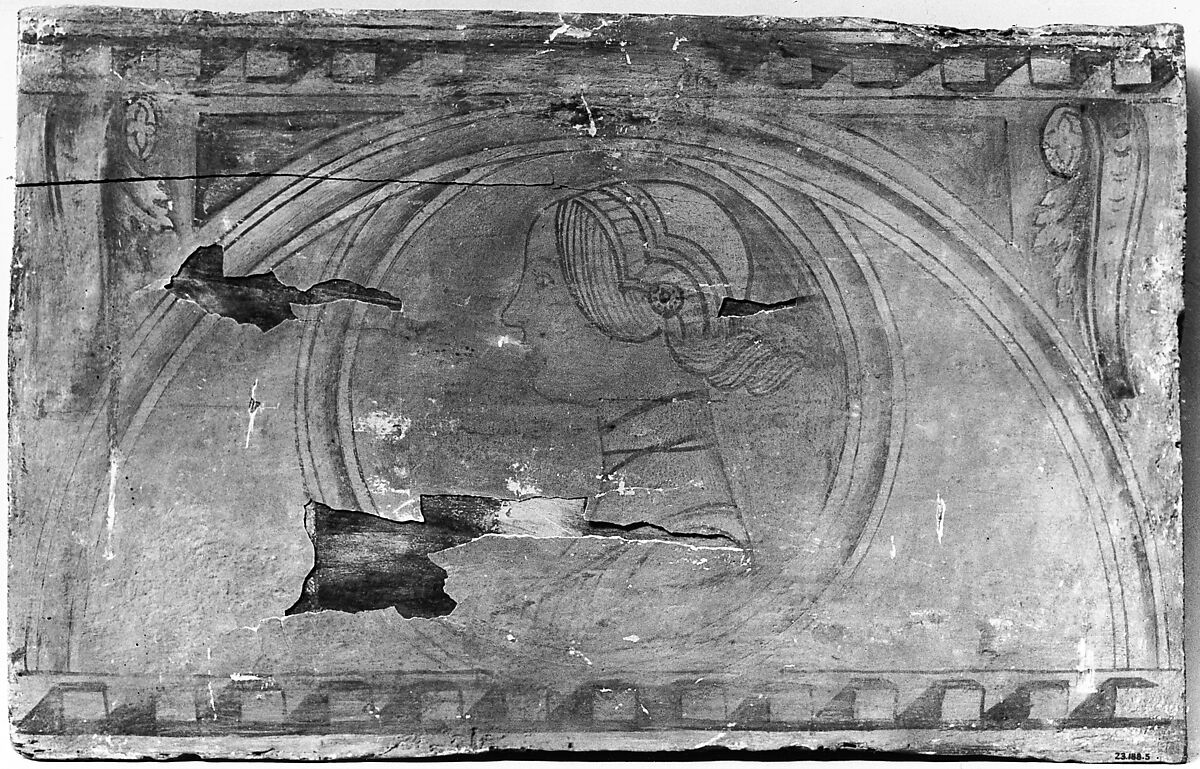 One of fourteen panels from a frieze (23.188.1–.14), each depicting a profile portrait bordered by a molding of dentils to simulate architecture.