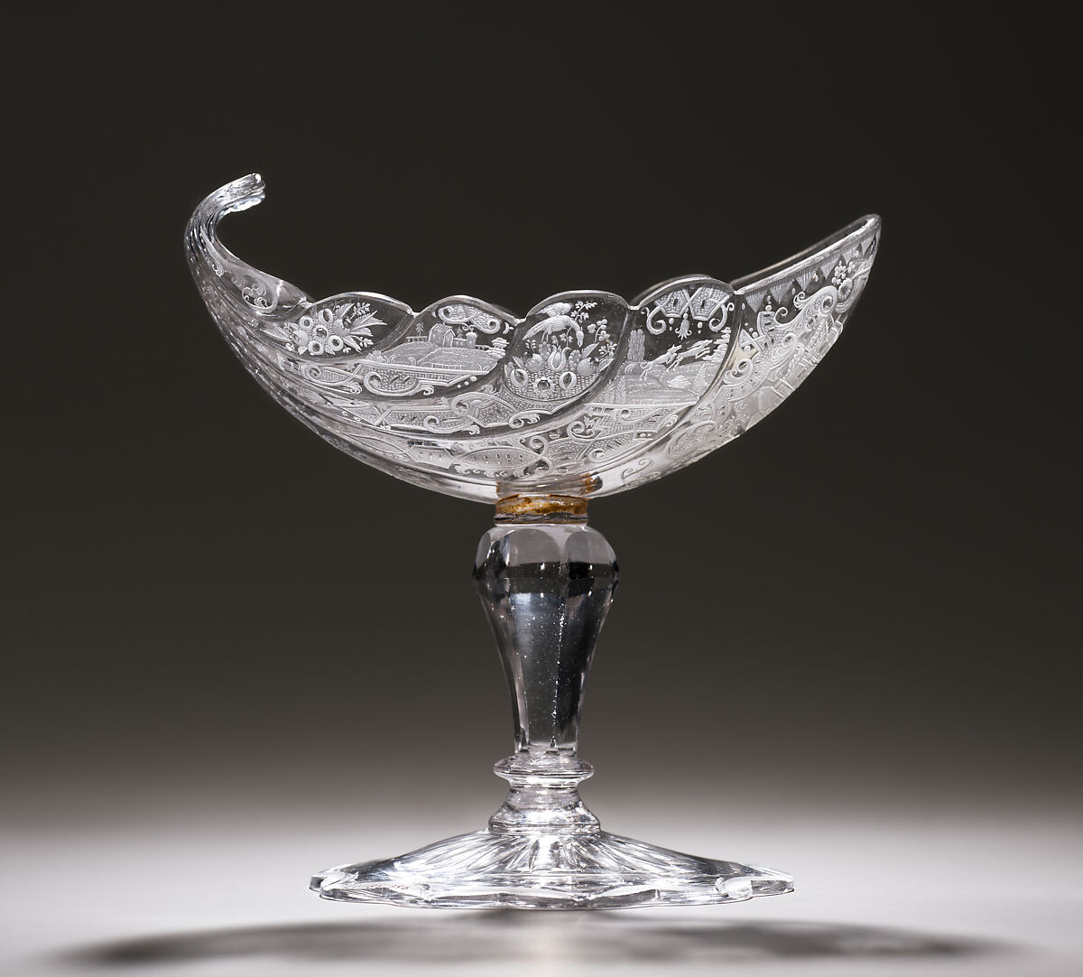 The engraving on this sweetmeat dish, called "Gondola" shape, is exceptionally fine.