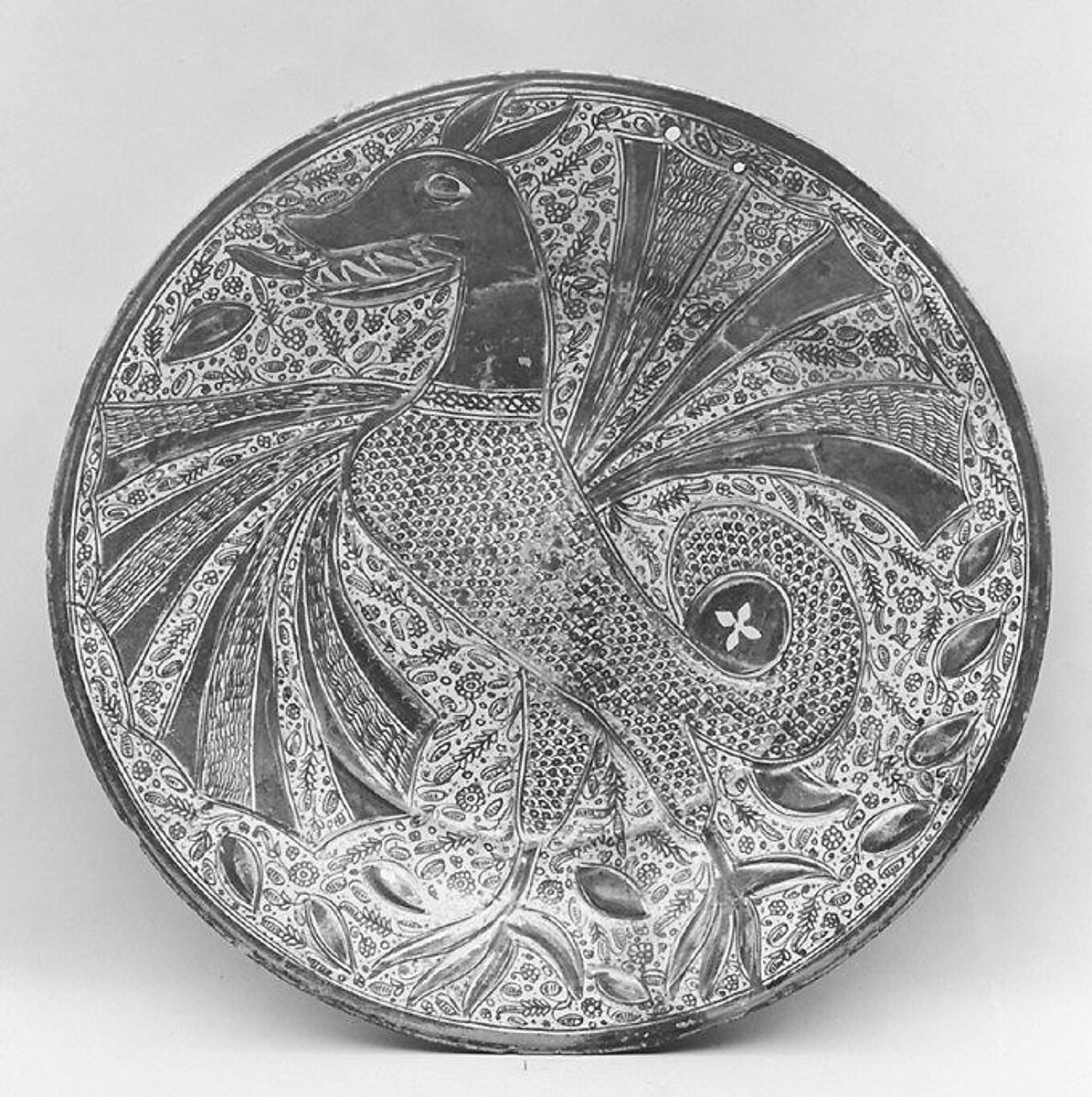 Tin-glazed earthenware, of which lusterware is one type, was developed in the Middle East in the ninth and tenth centuries to imitate the porcelains produced in China. The opaque white glaze concealed the clay body, which could range from pale buff to brick red, allowing for brilliant effects created by painting the white surface with metal oxides that fired to a range of colors. This technique, as well as the use of metallic luster—an iridescent, coppery painted glaze—spread throughout the Muslim world, arriving among the potters of Valencia in the thirteenth century. The so-called Hispano-Moresque lusterware, with its fusion of Islamic and Gothic styles and motifs, often in shaped imitating those of metal vessels, was treasured by the elite in Spain during the fifteenth century and exported to the courts of Europe. The Valencian industry declined in the late sixteenth century, as colorful Italian Renaissance maiolica gained in popularity among the fashionable and as Spanish centers were founded to produce versions of its pictorial forms. Adding to this decline was the expulsion from Valencia in 1609 of all the remaining Moriscos (Muslims converted to Christianity), though Christian potters reestablished the industry shortly thereafter.