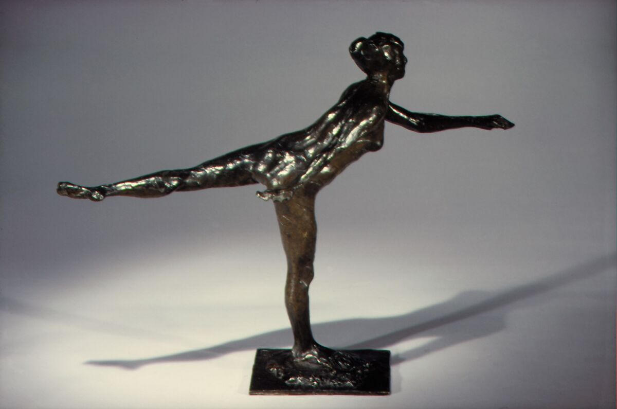 Upon Degas's death in 1917, more than 150 figurative sculptures were found in his studio. Most were made of fragile wax, clay, and plastiline (a wax- and oil-based modeling material). Many had deteriorated. Only a few were preserved in copies that had been cast from them in plaster. Except for the wax Little Fourteen-Year-Old Dancer (Washington: NGA) none of these sculptures had been publicly exhibited during the artist’s lifetime.