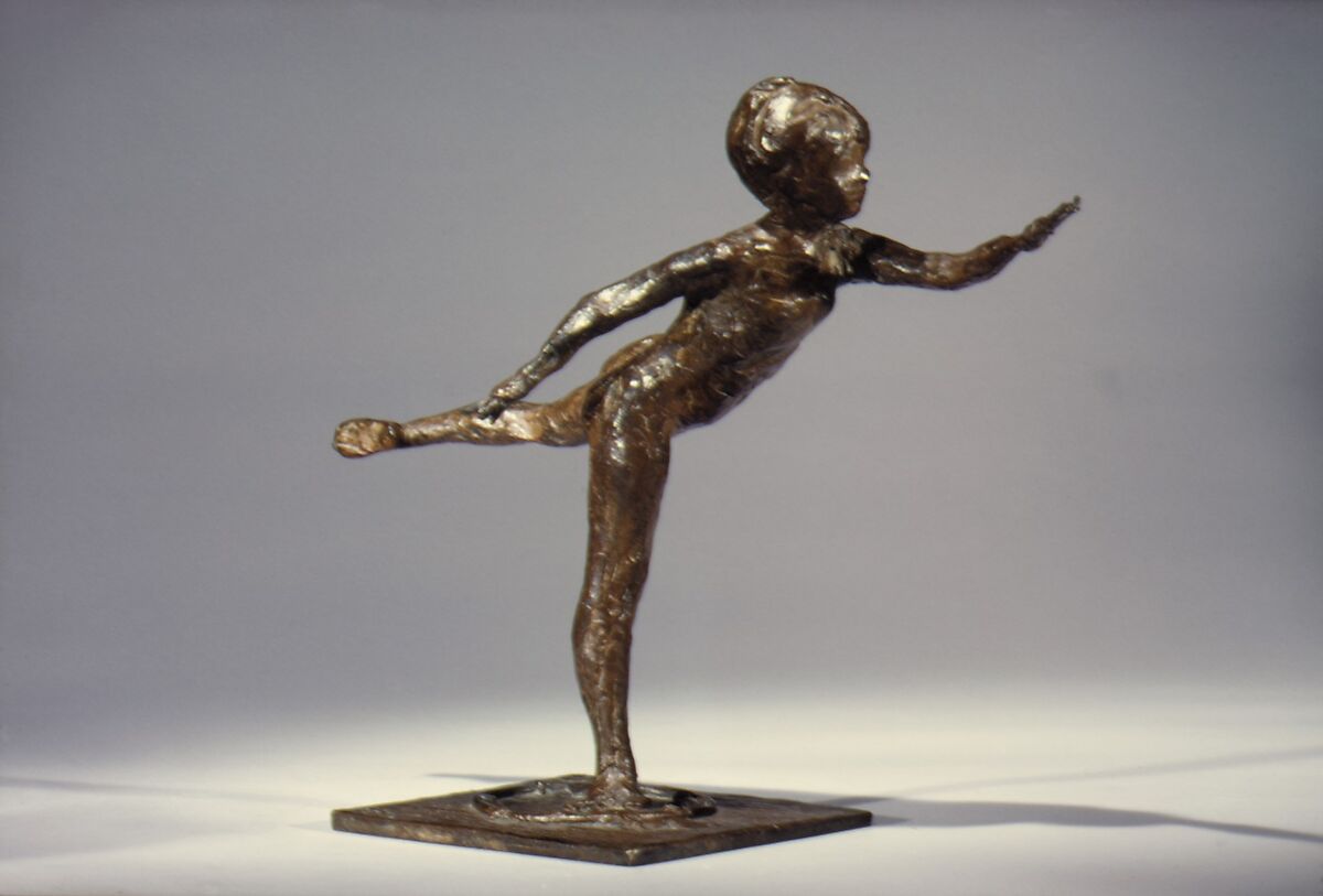 Upon Degas's death in 1917, more than 150 figurative sculptures were found in his studio. Most were made of fragile wax, clay, and plastiline (a wax- and oil-based modeling material). Many had deteriorated. Only a few were preserved in copies that had been cast from them in plaster. Except for the wax Little Fourteen-Year-Old Dancer (Washington: NGA) none of these sculptures had been publicly exhibited during the artist’s lifetime.
