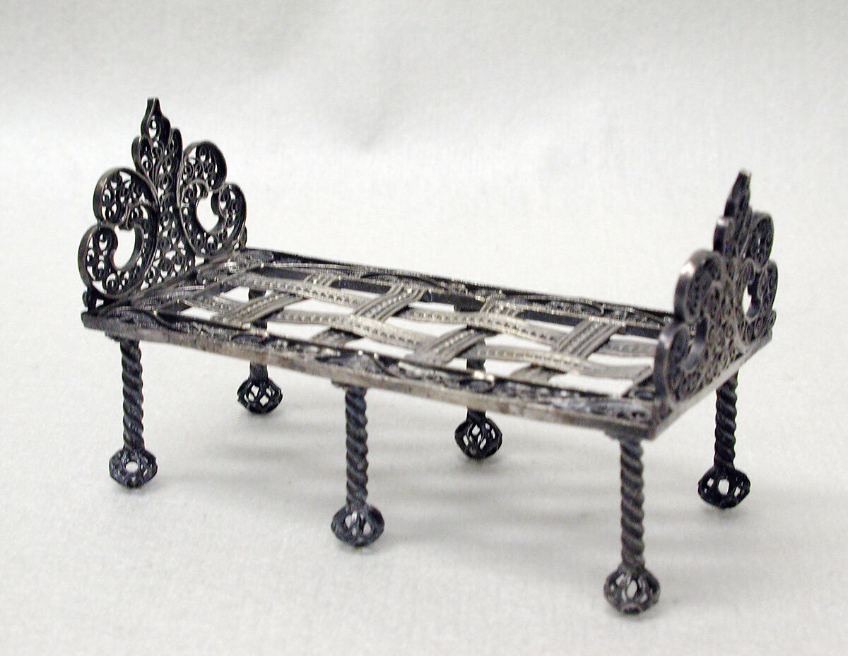 Part of set of silver miniature furniture, 31.37.1–.22, and a box, 31.37.23.