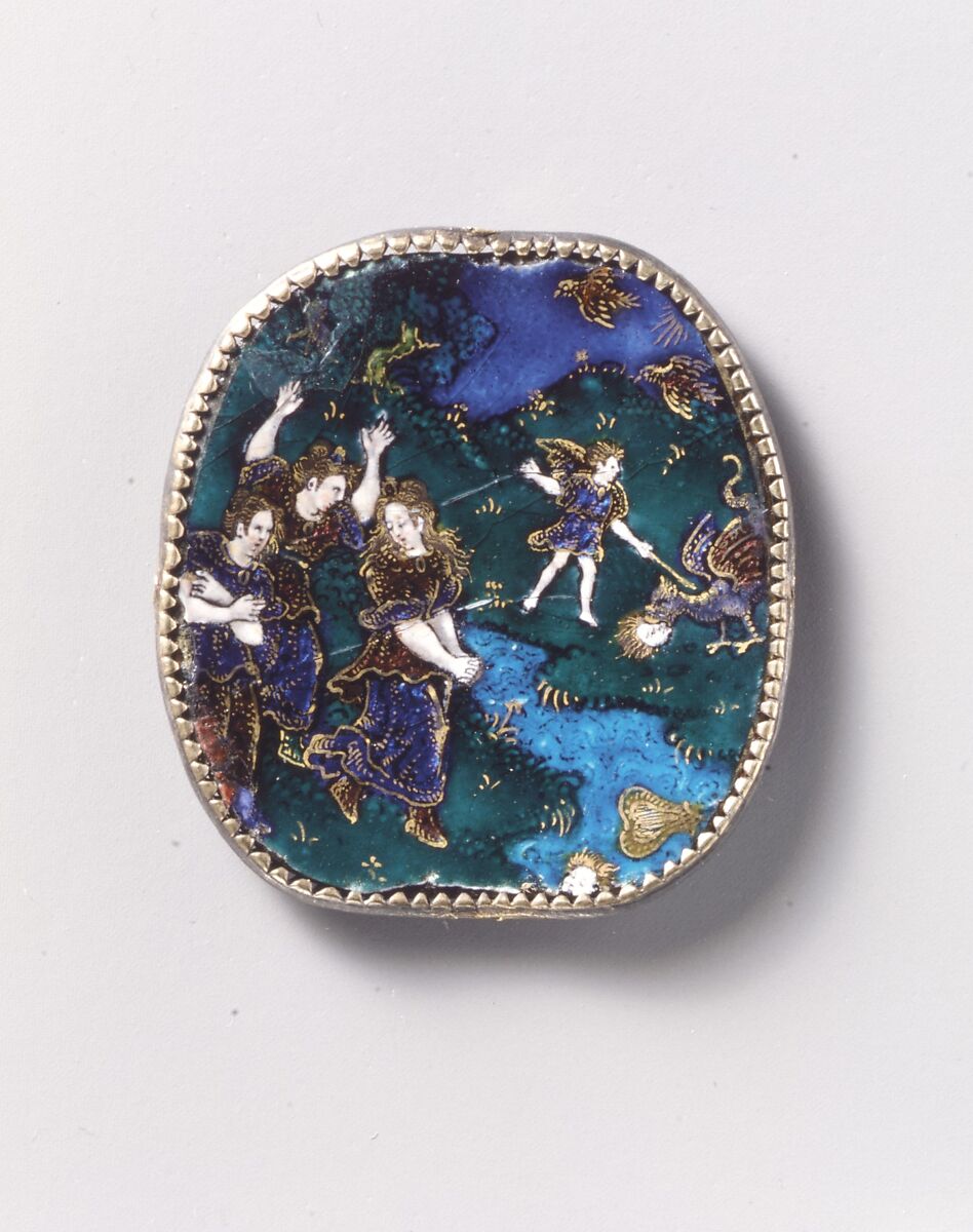 The object is a fragment of a watchcase cover; the image was taken from an uillustration by Bernard Salomon (ca. 1508–ca. 1561) for an edition of the Latin poet Ovid's Metamorphoses, first published in Lyon by Jean de Tournes in 1559.