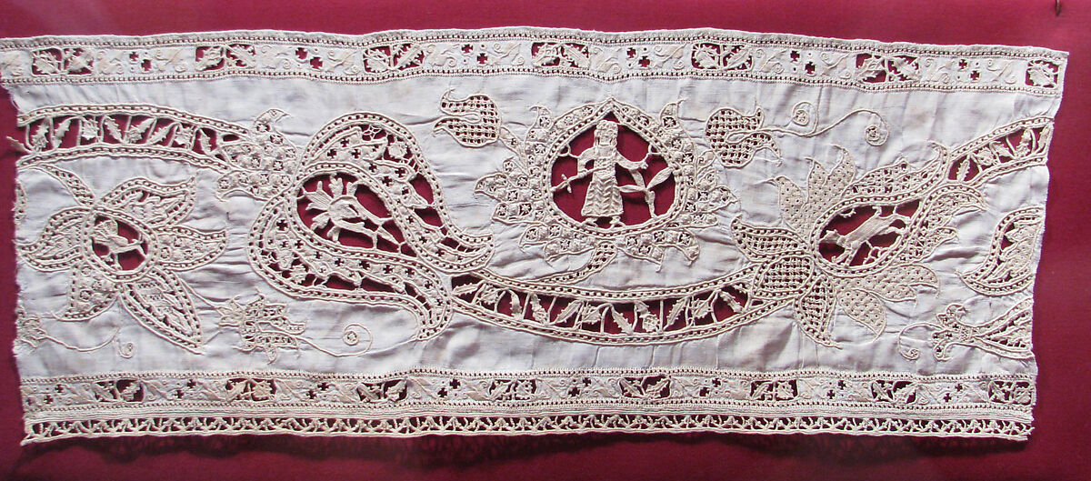 • Medium: Cutwork, needle lace, punto reale, punto riccio, punto in aria, reticello, linen