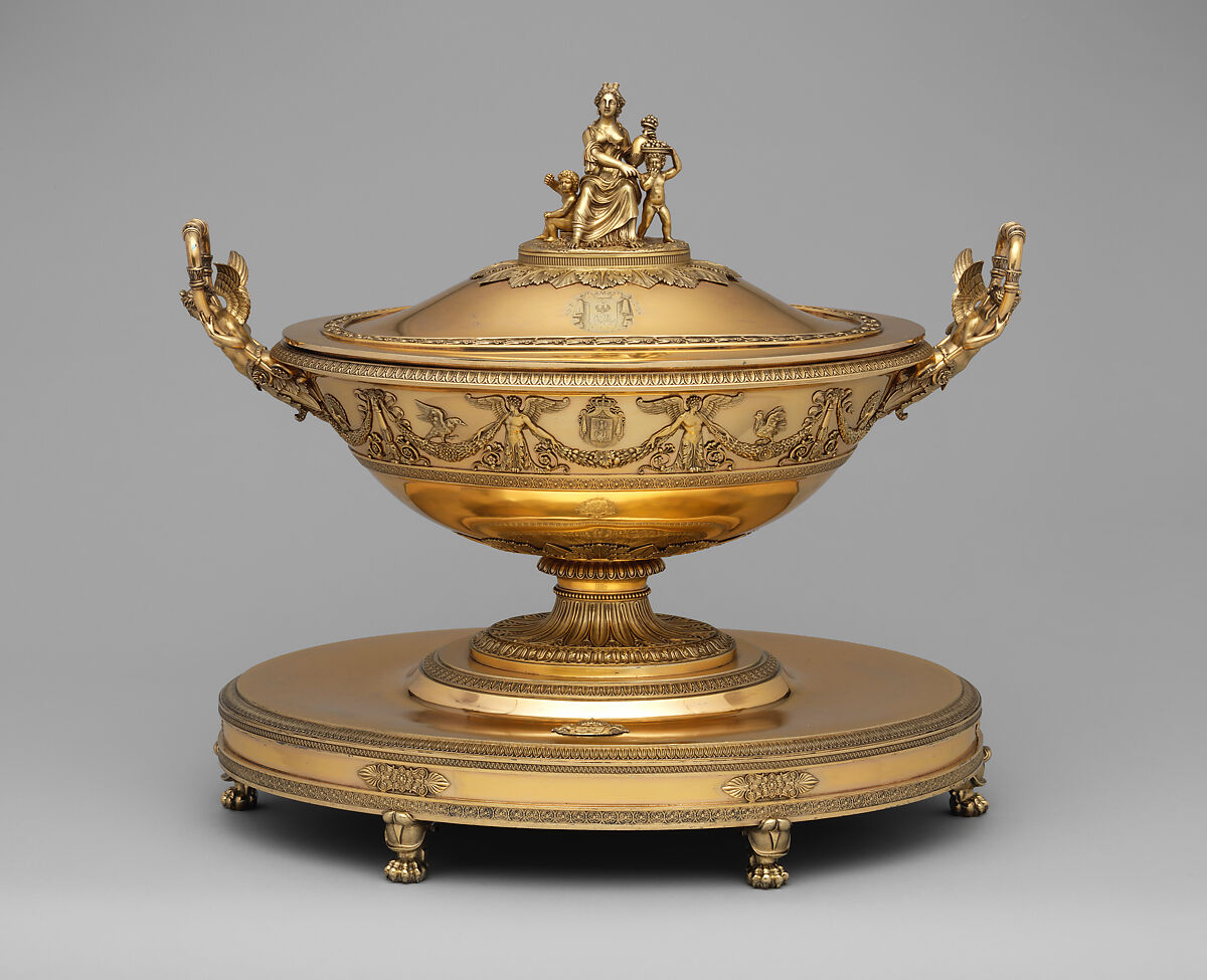 This tureen is part of a large table service reputedly given by Napoleon I to his sister Pauline and her husband, Prince Camillo Borghese.