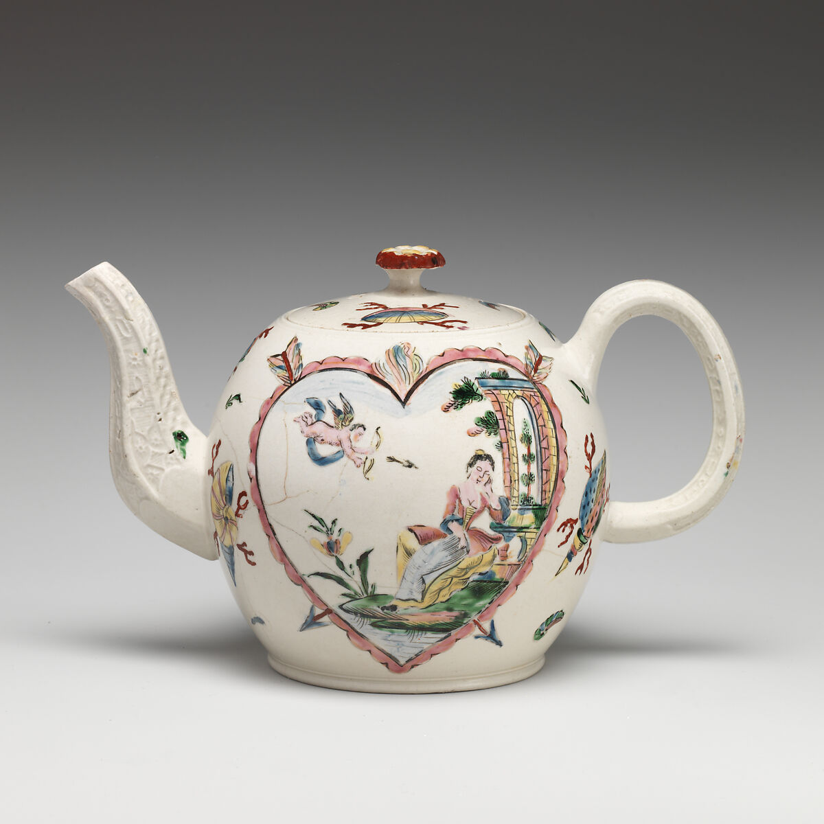 - Medium:Salt-glazed stoneware with enamel decoration