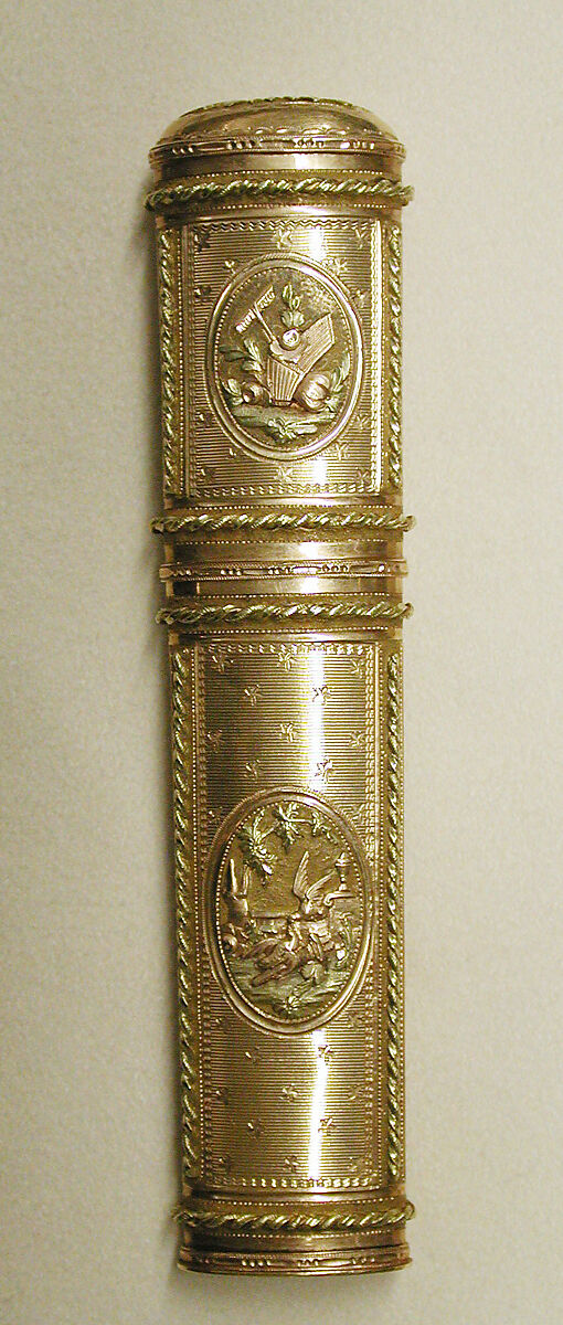In eighteenth-century Europe, Paris led the production of high-quality luxury goods. Parisian goldsmiths made a wide range of small, personal articles such as snuffboxes; étuis to hold sealing wax, tweezers, or utensils for sewing; souvenirs, which contained thin ivory tablets for note taking; and shuttles for knotting lace. Gold snuffboxes and boxes decorated with portrait miniatures were prized and frequently given as royal gifts, often to ambassadors or members of the court in lieu of cash payments for their services. Coveted and admired, these boxes were produced from a variety of materials. The best were skillfully made of gold and embellished with diamonds, enameled decoration, lacquer, and other luxurious materials. By the middle of the century, the taking of snuff had become an entrenched social ritual, and the snuffbox, too, had become an important social prop. Snuffboxes were considered highly fashionable accessories, with some merchants advertising new boxes with each change of season. The popularity of snuffboxes extended to all levels of society, and for those who could not afford gold, boxes were produced in less expensive materials such as silver, tortoiseshell, porcelain, or domestically produced lacquer.