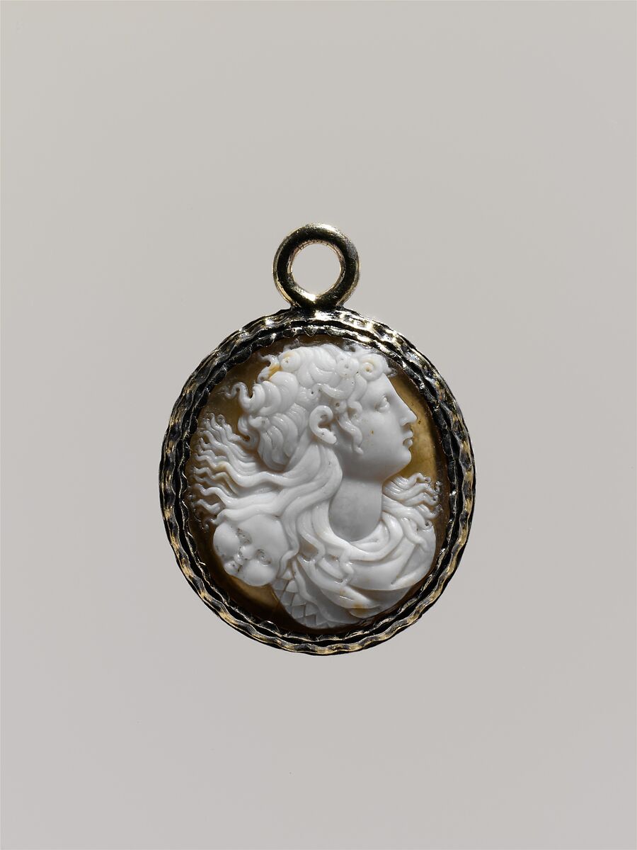 The distinctive Mannerist style of this cameo, with its shallow, flattened relief and elegantly meandering flourishes such as the snaky locks of hair, seems un-Italian, yet one hesitates to call it French because so little is known as yet about Renaissance carvers in France.