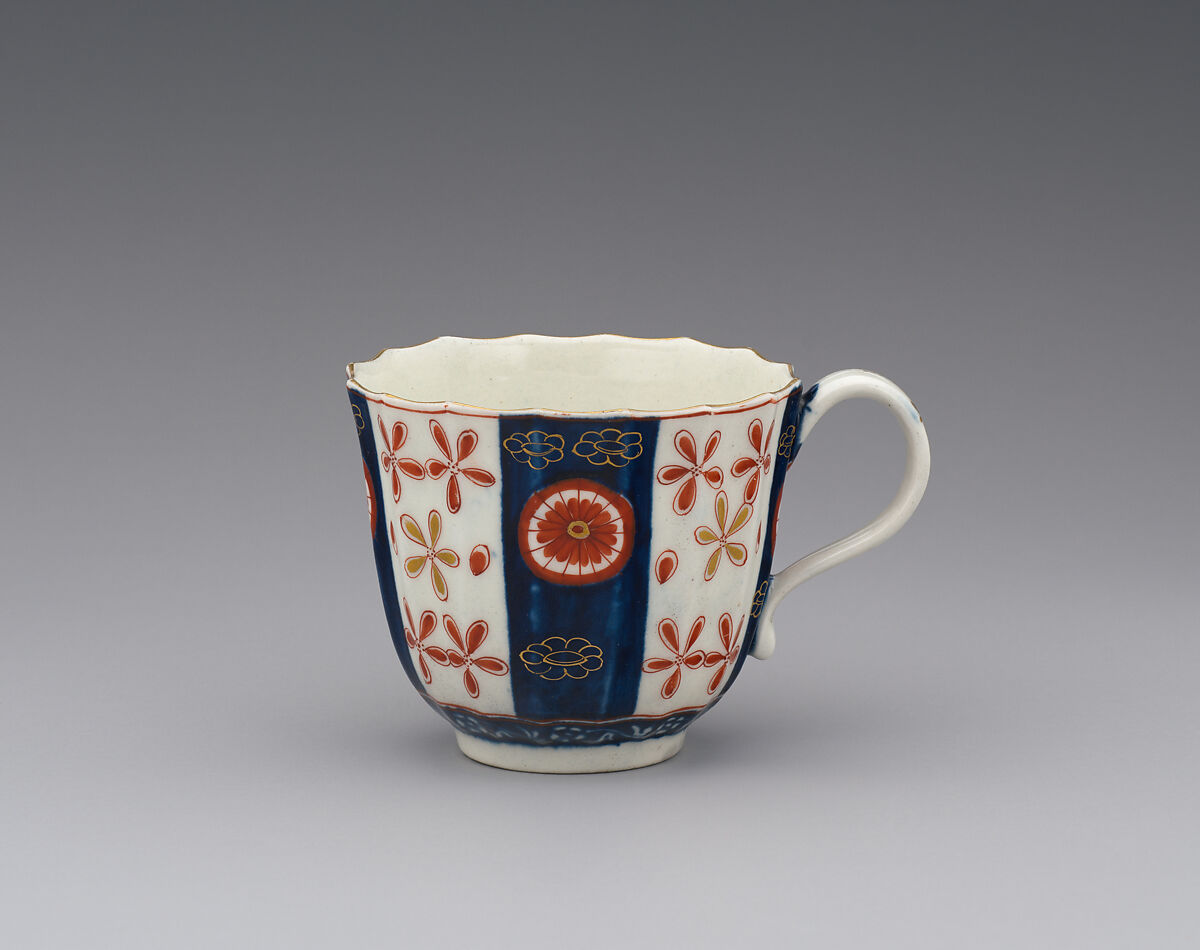 Eighteenth- and nineteenth-century porcelain tea sets usually comprised a teapot and stand, milk jug, sugar bowl, tea caddy, spoon tray, slop basin, six or twelve tea bowls with or without handles, and six or twelve saucers, a coffee pot and six or twelve coffee cups and a dish for cake. The Worcester factory made tea bowls with a handle if the decoration was European and without a handle for Oriental designs.
