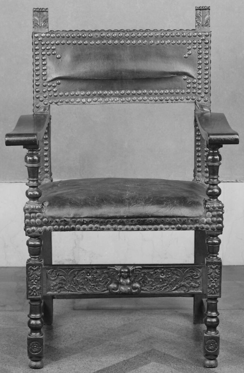 - Medium: Carved walnut, leather