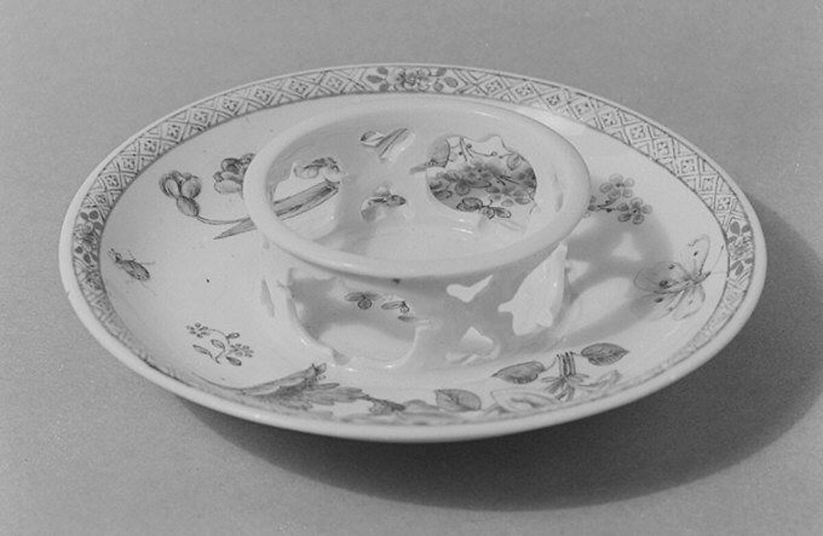 A cup with a saucer that has a raised gallery is called a trembleuse, probably because the gallery prevented the cup from falling when the saucer was held by someone with trembling hands. Trembleuses were used primarily for hot chocolate, which was popular among the affluent Viennese, and were a specialty of Du Paquier.