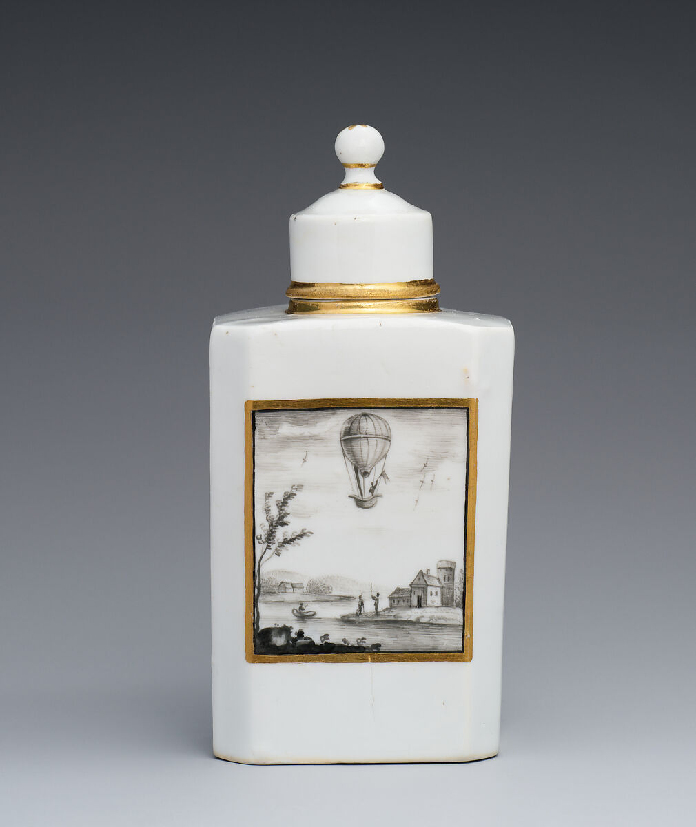 The scene commemorates the balloon ascension of Nicolas François Blanchard (1753–1809), who crossed from Dover to Calais in 1785.