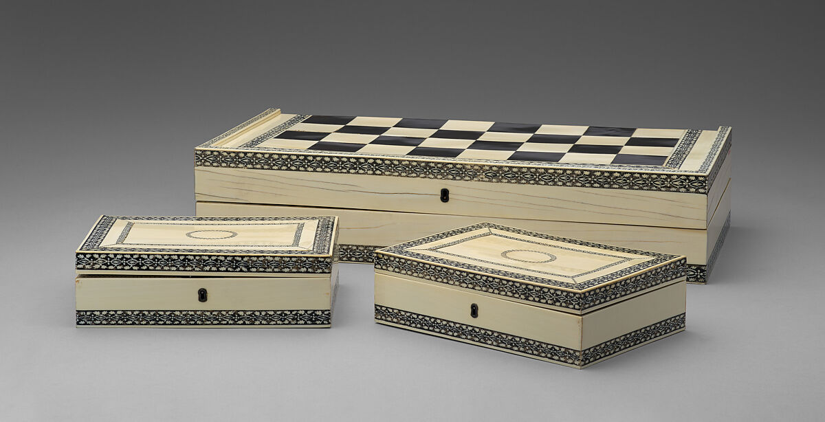 Overall (each box): 2 1/2 × 8 3/8 × 5 in. (6.4 × 21.3 × 12.7 cm) - Classification: Chess Sets
