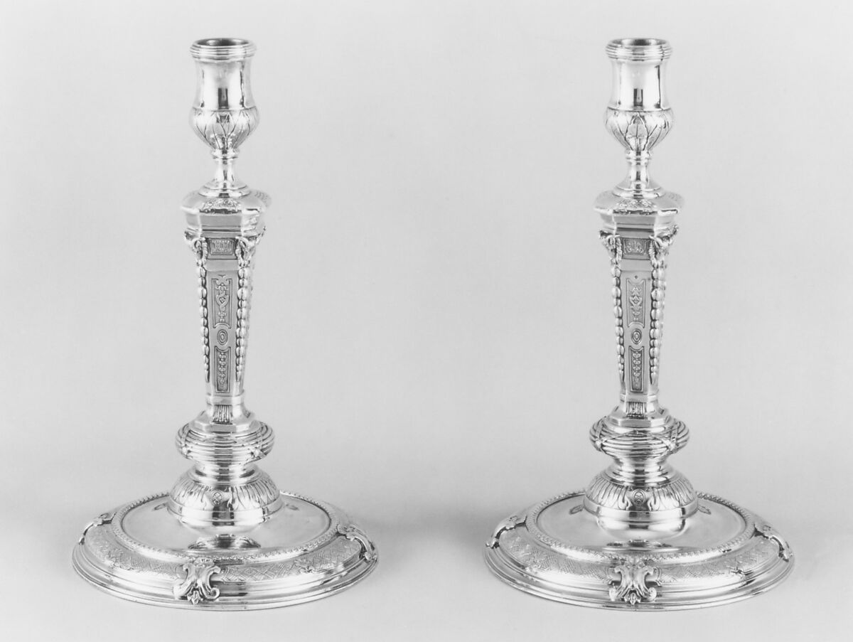 Daughter of one of the founders of the Weyerhaeuser Timber Company, Catherine D. Wentworth (1865–1948) was an art student and painter who lived in France for thirty years. She became one of the most important American collectors of eighteenth-century French silver and on her death in 1948 bequeathed part of her significant collection of silver, gold boxes, French furniture, and textiles to the Metropolitan Museum. The collection is particularly strong in domestic silver as illustrated by this pair of candlesticks.