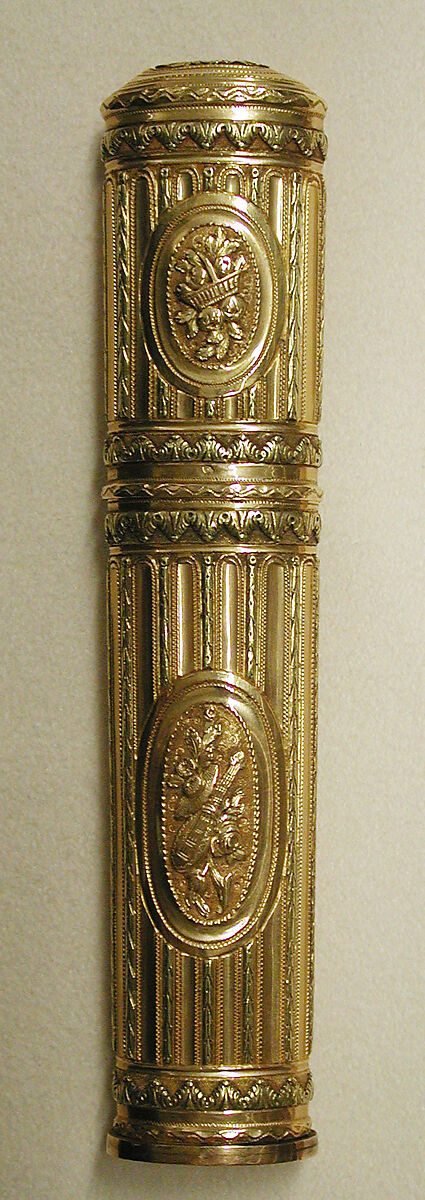 In eighteenth-century Europe, Paris led the production of high-quality luxury goods. Parisian goldsmiths made a wide range of small, personal articles such as snuffboxes; étuis to hold sealing wax, tweezers, or utensils for sewing; souvenirs, which contained thin ivory tablets for note taking; and shuttles for knotting lace. Gold snuffboxes and boxes decorated with portrait miniatures were prized and frequently given as royal gifts, often to ambassadors or members of the court in lieu of cash payments for their services. Coveted and admired, these boxes were produced from a variety of materials. The best were skillfully made of gold and embellished with diamonds, enameled decoration, lacquer, and other luxurious materials. By the middle of the century, the taking of snuff had become an entrenched social ritual, and the snuffbox, too, had become an important social prop. Snuffboxes were considered highly fashionable accessories, with some merchants advertising new boxes with each change of season. The popularity of snuffboxes extended to all levels of society, and for those who could not afford gold, boxes were produced in less expensive materials such as silver, tortoiseshell, porcelain, or domestically produced lacquer.