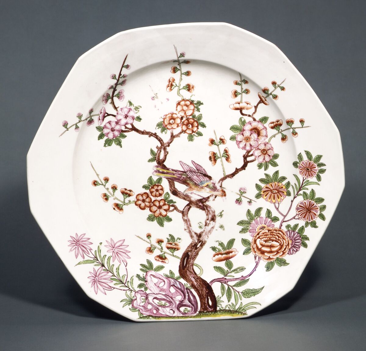 Three twelve-sided dishes with decoration similar to that on this example—remnants of one of the earliest services produced by Du Paquier—survive at the Residenz in Munich. The dessert service was acquired for the Bavarian court in 1722–23. Serving dishes such as this one may have been intended to hold pyramids of candied fruit, one of the staples of the dessert table. It is not known if the Museum’s dish belonged to the Bavarian service or is slightly later.