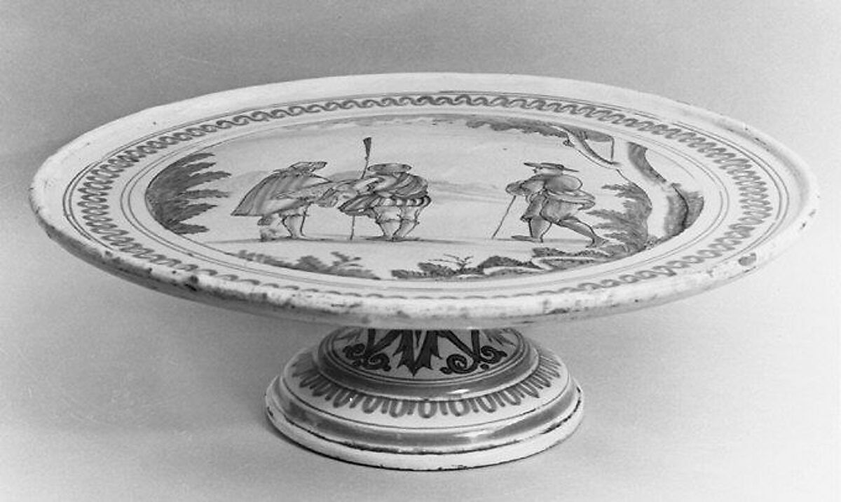 Faience, or tin-glazed and enameled earthenware, first emerged in France during the sixteenth century, reaching widespread usage among elite patrons during the seventeenth and early eighteenth centuries, prior to the establishment of soft-paste porcelain factories. Although characterized as more provincial in style than porcelain, French faience was used at the court of Louis XIV as part of elaborate meals and displays, with large-scale vessels incorporated into the Baroque garden designs of Versailles. Earlier examples of French faience attest to the strong influence of maiolica artists from Italy. Later works demonstrate the ways in which cities such as Nevers, Rouen, Lyon, Moustiers, and Marseille developed innovative vessel shapes and decorative motifs prized among collectors throughout Europe.