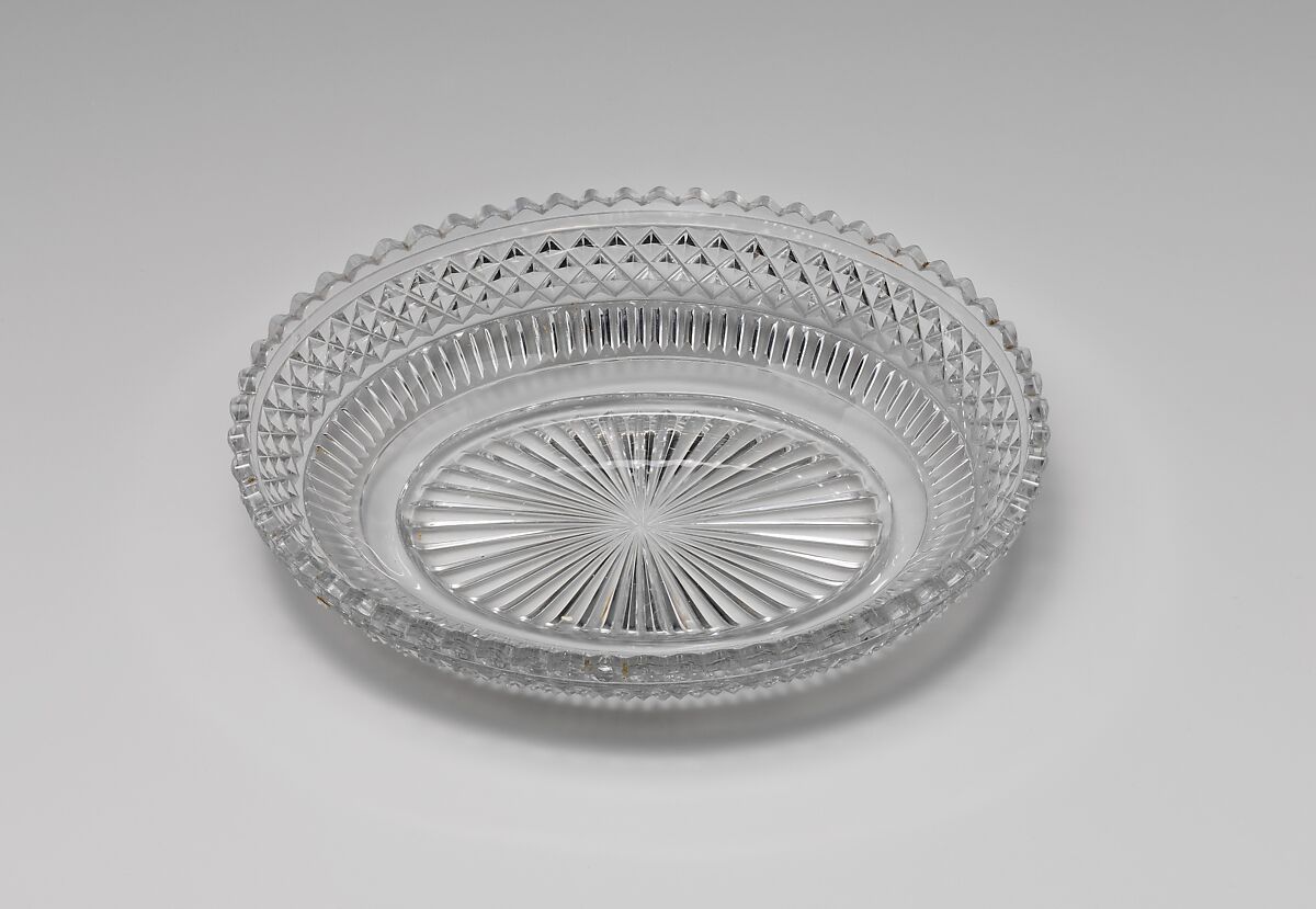 William Bayard (1761–1826) commissioned this table service (2008.594.1-.53) in 1818 for his daughter Harriet (1799–1875) and her husband Stephen Van Rensselaer IV (1789–1868) from Pellatt & Green, London’s premier glasshouse. The fine lead glass and deep Regency cutting would have created a brilliant sparkle in their candlelit dining room, in Albany, New York. The set originally included dozens of drinking glasses, for claret, ale, and champagne, as well as decanters, wine coolers, tumblers, and finger glasses, all “elegantly cut in diamonds & Rings” according to the surviving bill of sale (2008.594.54a,b). In addition to its elegance and quality, the service is extremely rare in it’s documentation to the specific American family who owned it and to the English glasshouse that made it.