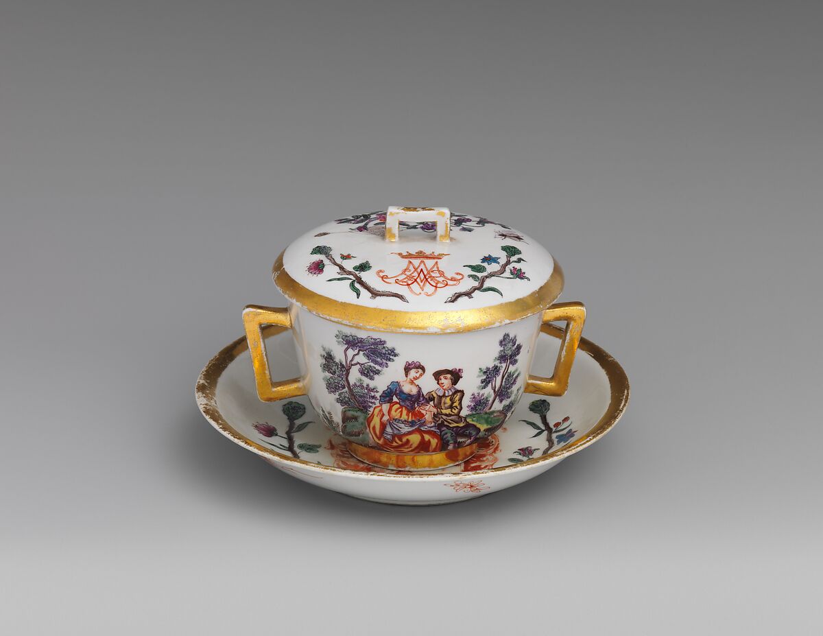 Only a handful of Du Paquier artists can be identified from the few signed pieces, even though the hands of many can be distinguished and the names of others are known from church records. This cup is signed Carl Wendelin Anreiter vz: in Wien: feci. and bears the family coat of arms. Anreiter (1702–1747) worked at Du Paquier before leaving to help establish the Doccia factory near Florence in 1737.