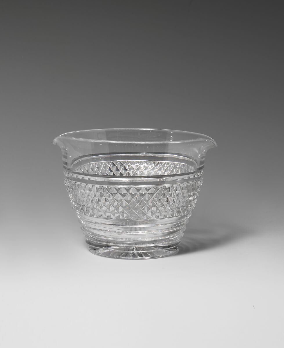 William Bayard (1761–1826) commissioned this table service (2008.594.1-.53) in 1818 for his daughter Harriet (1799–1875) and her husband Stephen Van Rensselaer IV (1789–1868) from Pellatt & Green, London’s premier glasshouse. The fine lead glass and deep Regency cutting would have created a brilliant sparkle in their candlelit dining room, in Albany, New York. The set originally included dozens of drinking glasses, for claret, ale, and champagne, as well as decanters, wine coolers, tumblers, and finger glasses, all “elegantly cut in diamonds & Rings” according to the surviving bill of sale (2008.594.54a,b). In addition to its elegance and quality, the service is extremely rare in it’s documentation to the specific American family who owned it and to the English glasshouse that made it.