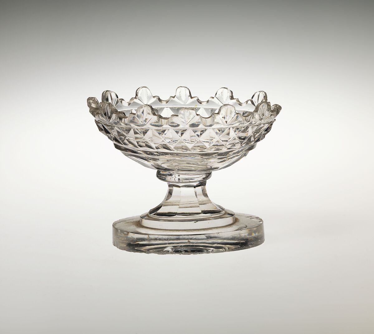 William Bayard (1761–1826) commissioned this table service (2008.594.1-.53) in 1818 for his daughter Harriet (1799–1875) and her husband Stephen Van Rensselaer IV (1789–1868) from Pellatt & Green, London’s premier glasshouse. The fine lead glass and deep Regency cutting would have created a brilliant sparkle in their candlelit dining room, in Albany, New York. The set originally included dozens of drinking glasses, for claret, ale, and champagne, as well as decanters, wine coolers, tumblers, and finger glasses, all “elegantly cut in diamonds & Rings” according to the surviving bill of sale (2008.594.54a,b). In addition to its elegance and quality, the service is extremely rare in it’s documentation to the specific American family who owned it and to the English glasshouse that made it.