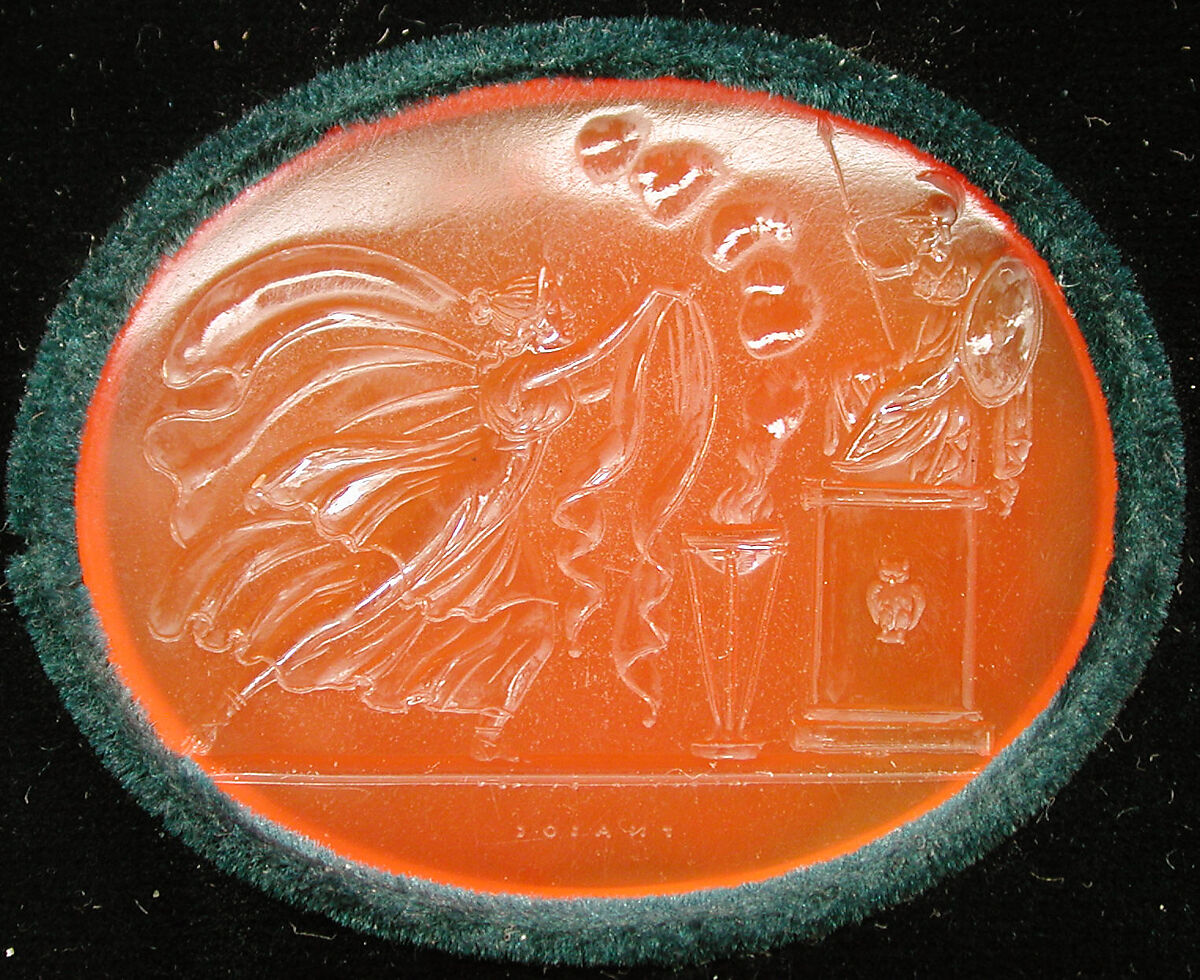 - Medium: Chalcedony intaglio and gesso impression, velvet box