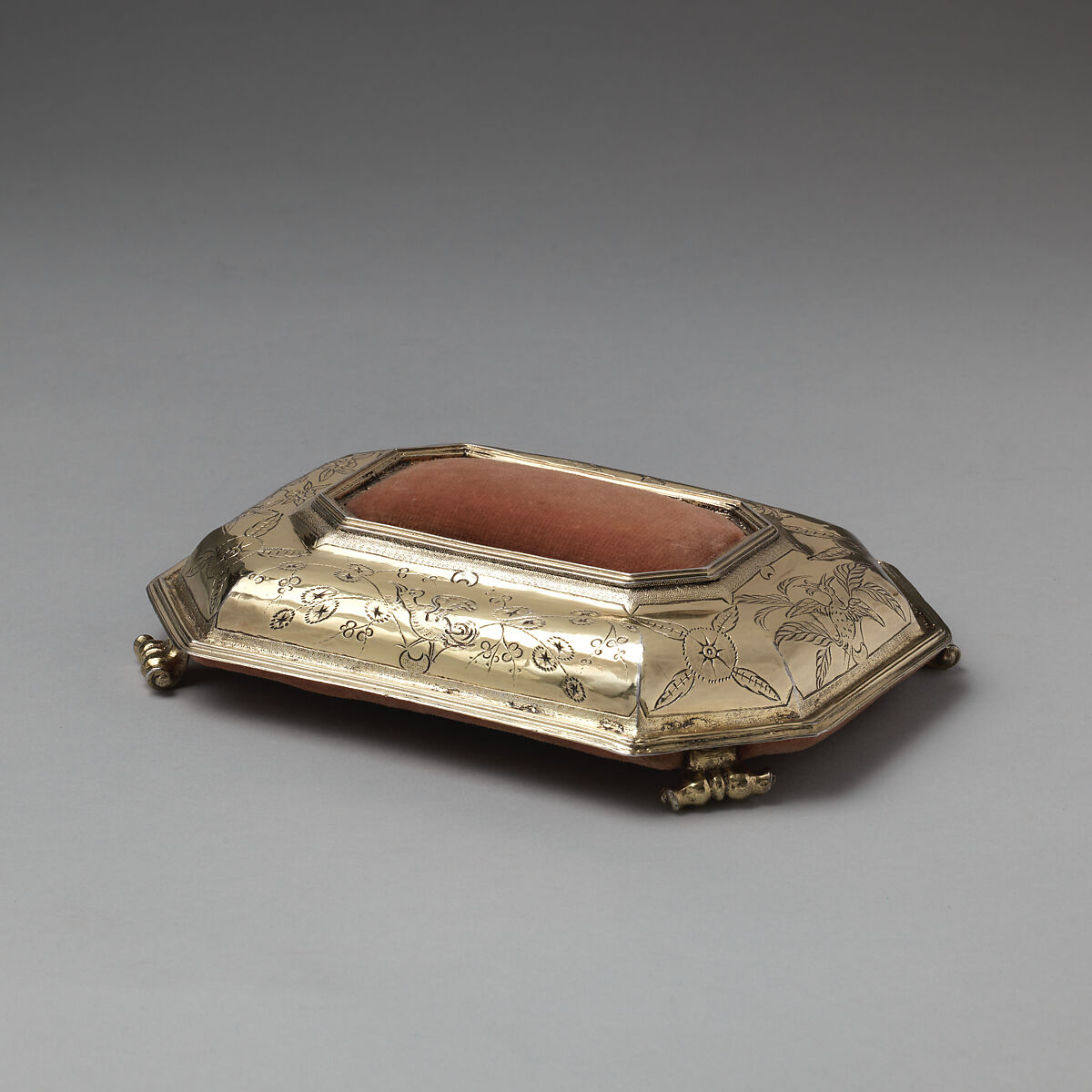 These objects are from a toilet set that also included a looking glass, a pair of candle snuffers, various small boxes and covered bowls, and two salvers.