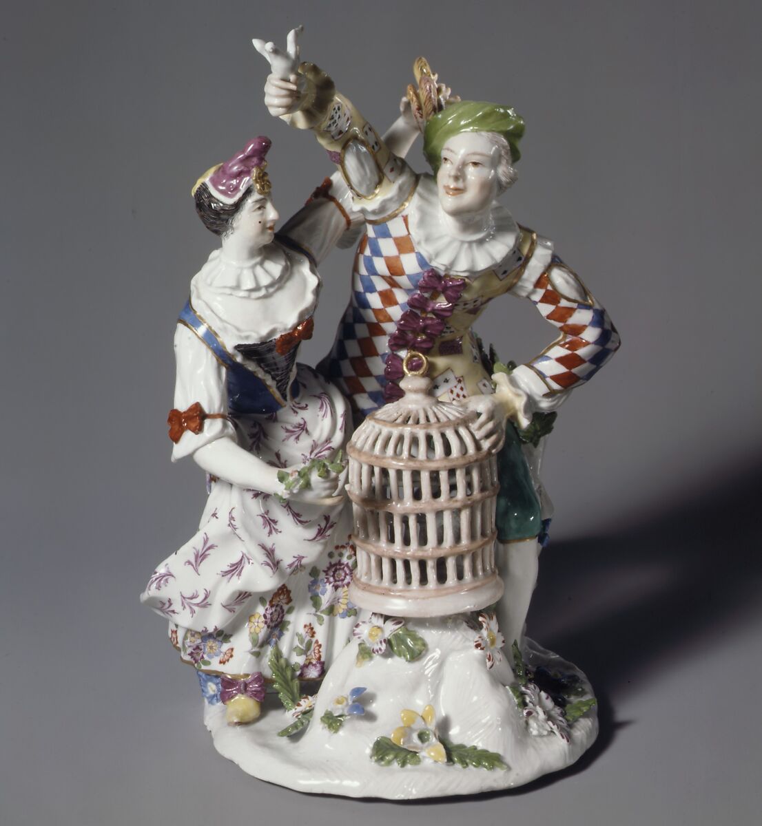 - Title: Harlequin and Columbine with birdcage