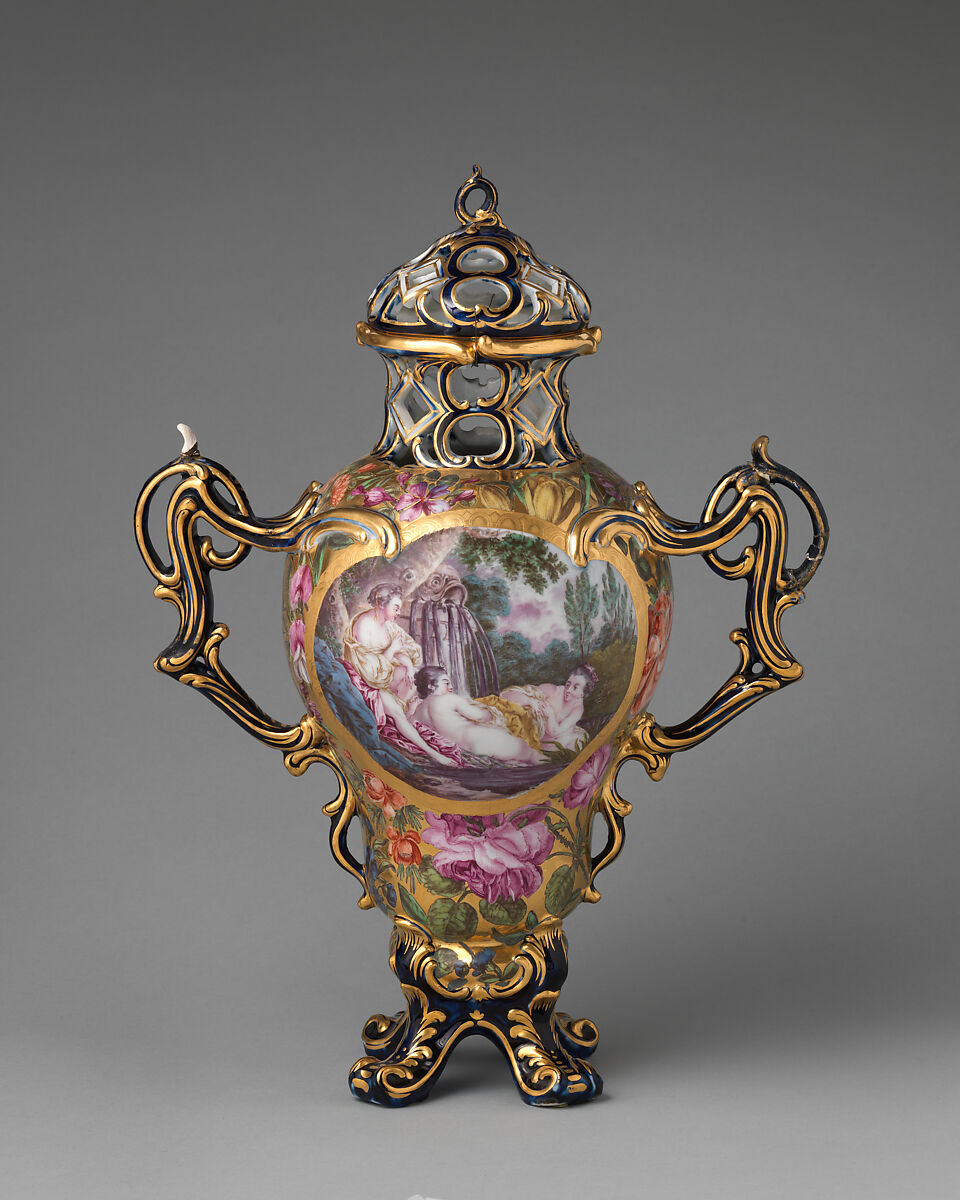 The scenes depict: (left) three nymphs after the painting La Source by Francois Boucher (1703–1770); and (right) Jupiter disguised as Diana with Diana's nymph Callisto, after an engraving by Rene Galliard (1719–1790) of a painting of 1759 by Boucher.
