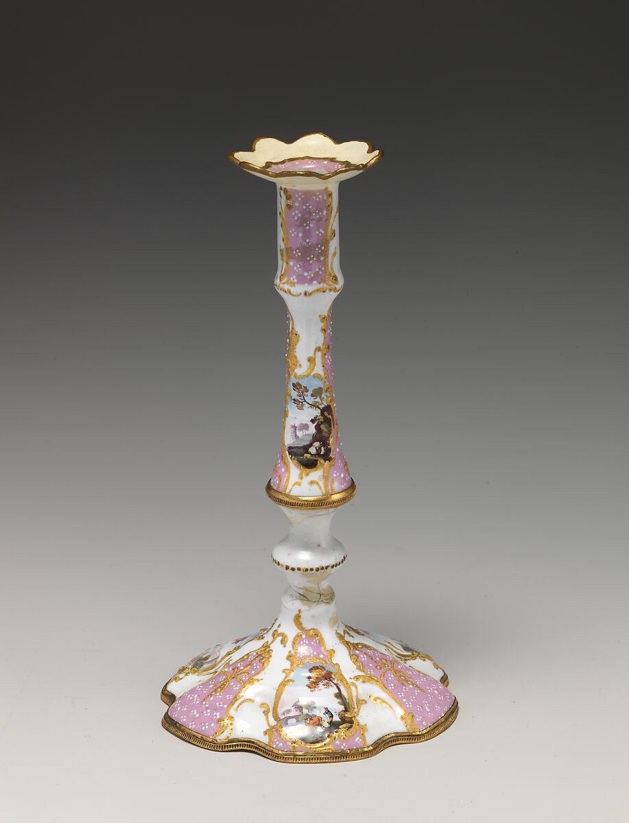 Enameled objects like this one, intended to imitate the lustrous quality of porcelain, were among the more affordable goods sold at toyshops across London and in fashionable English resort towns. Though often called "Battersea enamels" in common parlance (referring to the manufactory at York House, Battersea, operating only between 1753 and 1756), we rarely know exactly where individual pieces were made. The main centers of enamel production were in London, South Staffordshire (particularly in Bilston and Wednesbury), and Birmingham.