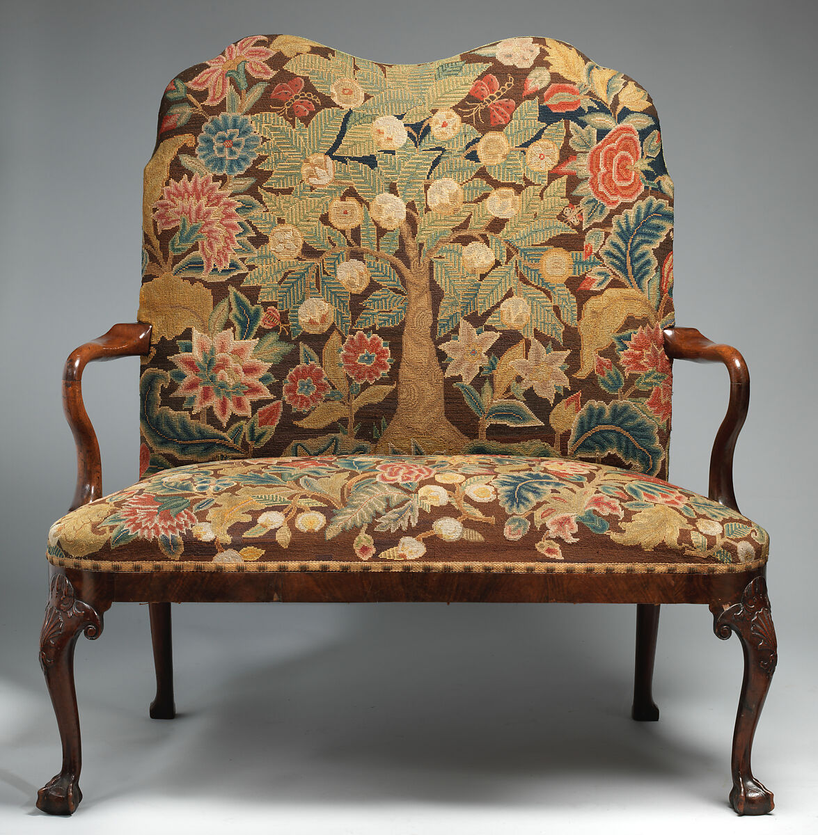 - Medium: Frame: walnut; cover: wool tent stitch on canvas