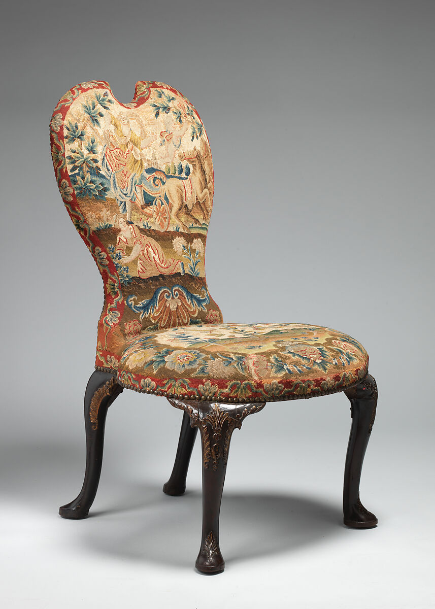 - Medium:Walnut, mahogany, parcel-gilt, needlework