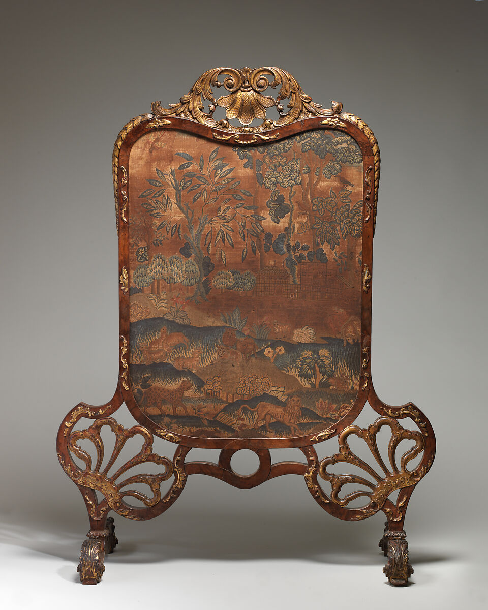 - Medium:Walnut frame, parcel gilt and needlework