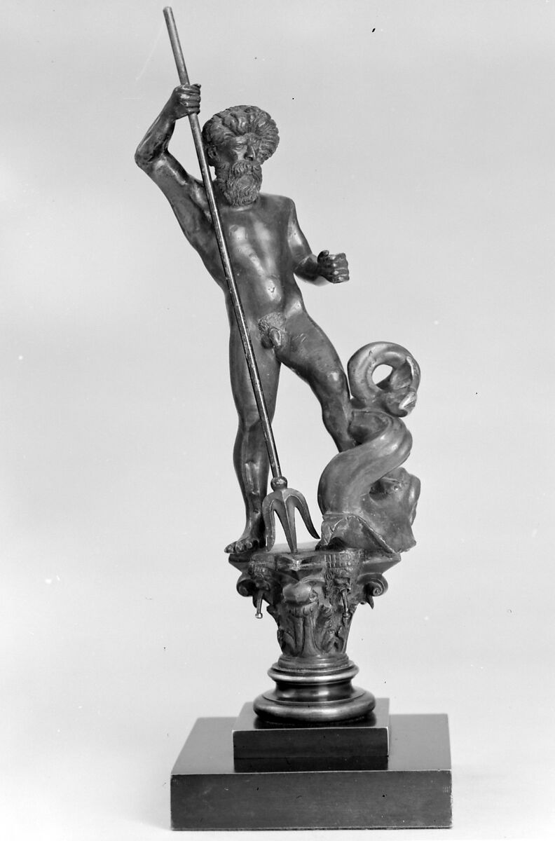 With its spouted base (thus clearly from a table fountain), this has all the vigor and humor that characterize the best of sixteenth-century German bronze statuettes.