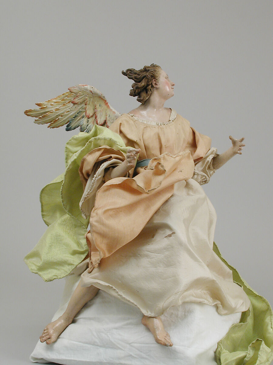 - Medium:Polychromed terracotta head; wooden limbs and wings; body of wire wrapped in tow; various fabrics