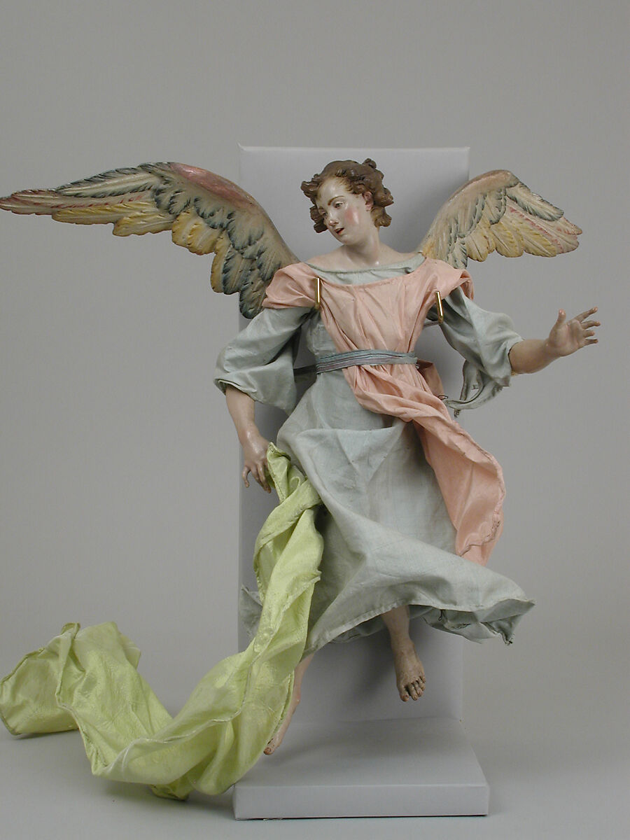 - Medium: Polychromed terracotta head; wooden limbs and wings; body of wire wrapped in tow; various fabrics