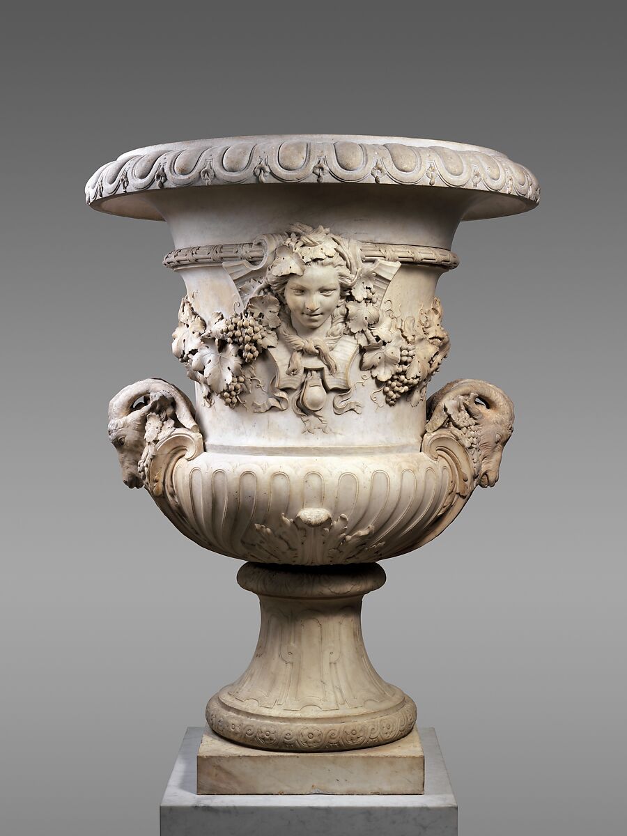 This vase, along with its mate by Jean-Baptiste Pigalle, was part of a set of four designed for the royal Château de Choisy by the architect Ange-Jacques Gabriel. None of the vases, however, was ever sent to Choisy. The Museum's pair was given by Louis XV to the marquis de Marigny, the marquise de Pompadour's brother, who placed them in his own château at Ménars, where they remained until the beginning of this century. The other pair, decorated with the attributes of Spring, was made by Jacques Verbeckt and is divided between the Musée du Louvre in Paris and the château at Malmaison.