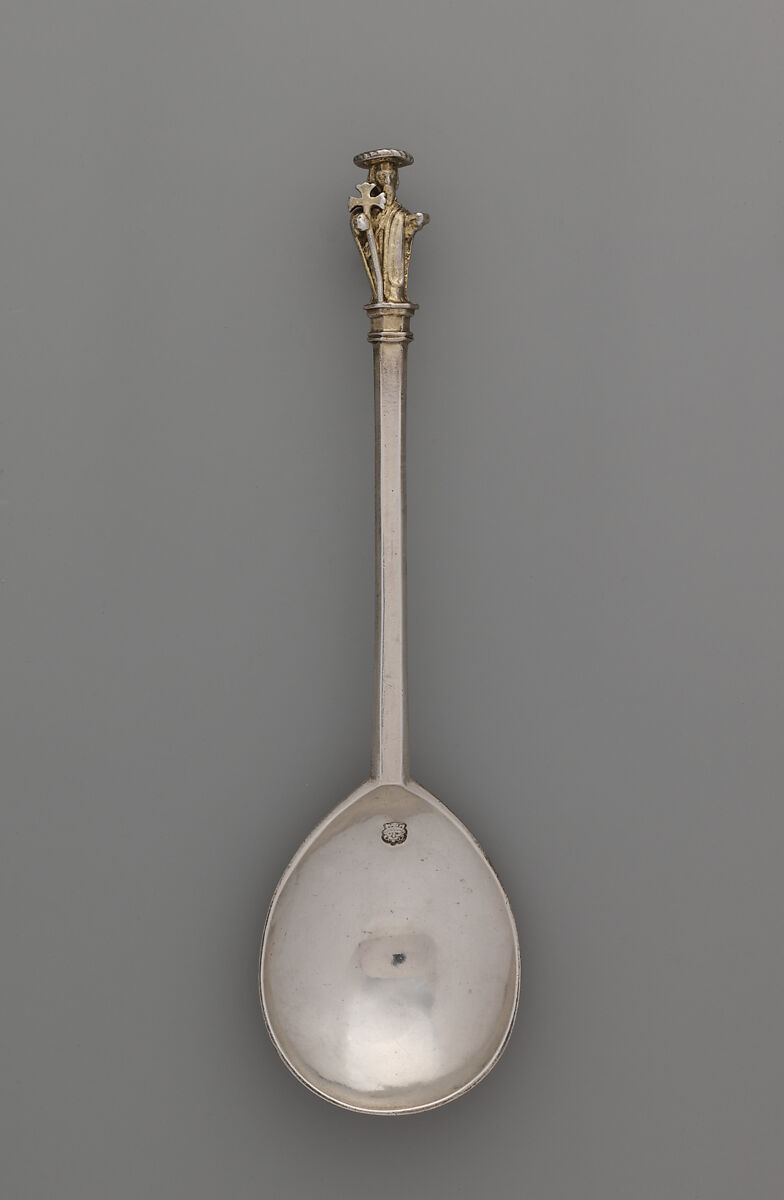 The set (67.166.1–.13) includes a master spoon with a figure of Christ and twelve apostle spoons. Martin Hewitt who made the Saint Andrew spoon had served his apprenticeship under William Cawdell. Both were specialist spoonmakers.