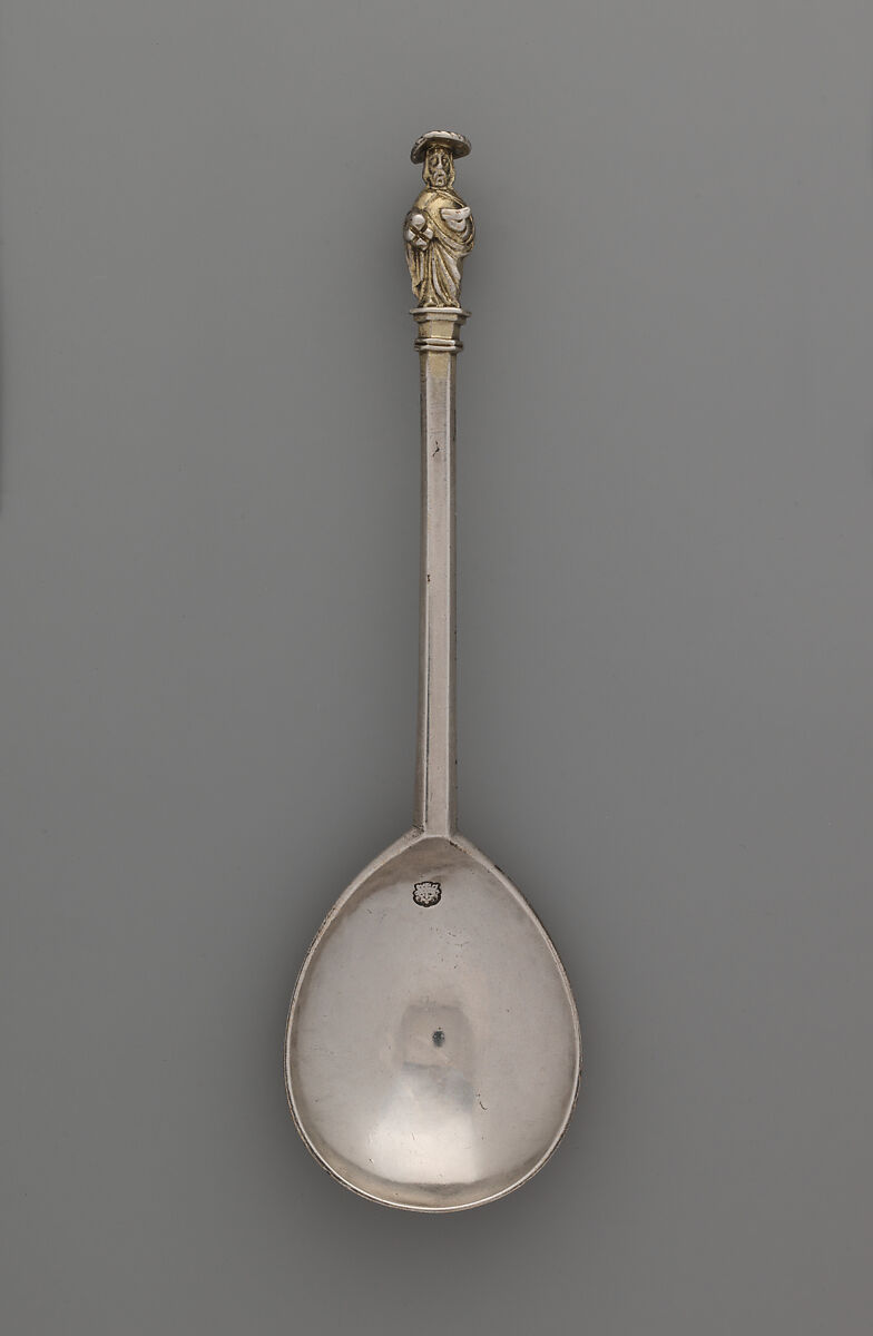 The set (67.166.1–.13) includes a master spoon with a figure of Christ and twelve apostle spoons. Martin Hewitt who made the Saint Andrew spoon had served his apprenticeship under William Cawdell. Both were specialist spoonmakers.