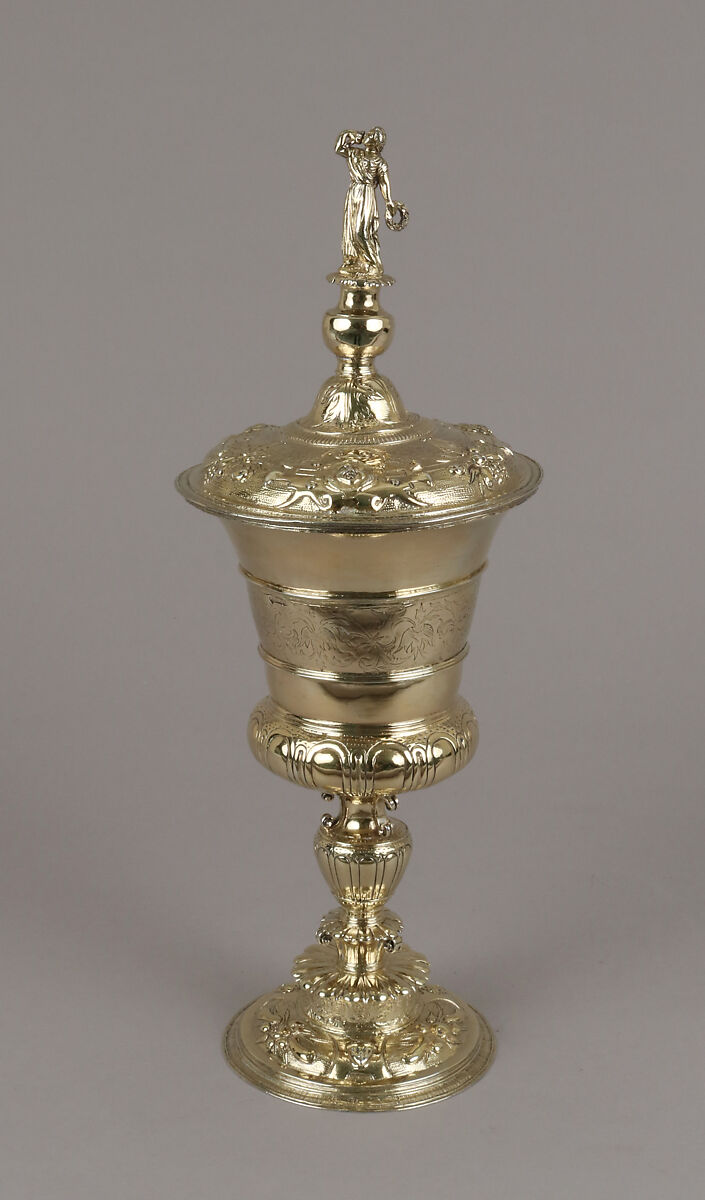 Although this cup was hallmarked in London, it was probably the work of an immigrant German or Flemish goldsmith.