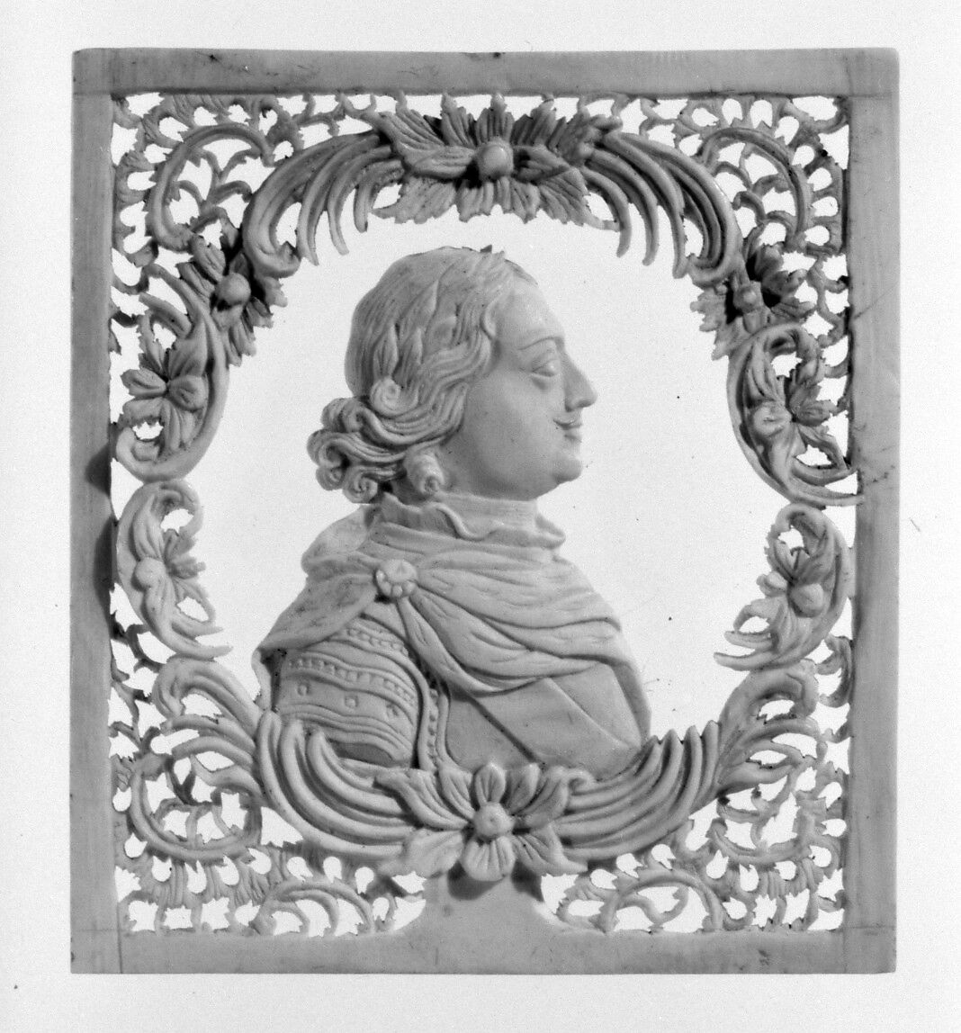 Forms a pair of profile portraits of Russian czars along with 1972.145.36, Catherine II (Catherine the Great). Kholmogory, a settlement at the mouth of the Northern Dvina River possessed a thriving ivory- and bone-carving industry using the by-products of the hunting and whaling activities at nearby Archangelsk.