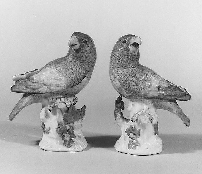 Porcelain birds have their origins in the princely tradition of maintaining collections of living animals and birds in menageries and aviaries, which were viewed as microcosms of the universe, and emblems of royal power and enlightenment. These collections often included exotic birds such as parrots, admired for their rarity, as well as more familiar native species.