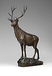 Harvey, who trained in Paris with the noted animal sculptor Emmanuel Frémiet, often drew inspiration from the denizens of zoos, especially those in the New York Zoological Park in the Bronx (popularly known as the Bronx Zoo). Here, a male elk, one of the largest North American mammals, appears alert. Harvey described its impressive antlers as being as “sharp as bayonets.” “Bull Elk” was cast in both monumental and statuette versions. The work serves as an emblem of the Benevolent and Protective Order of Elks and examples are installed in and around fraternal lodges across the United States.